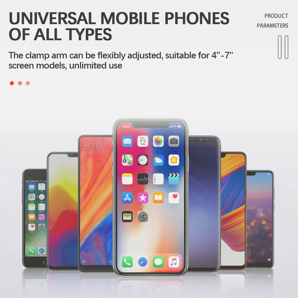 3. El diseño de conexión por gravedad utiliza el peso del teléfono en sí para permitir que los dos brazos sujeten el teléfono, y el teléfono se puede sujetar inmediatamente cuando se baja, Y se ajusta automáticamente durante todo el proceso, haciendo que sea más fácil de recoger y colocar.