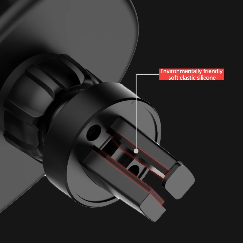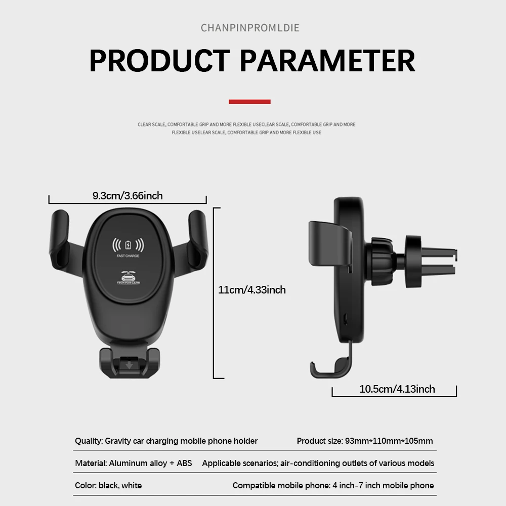 Cargador de coche inalámbrico rápido de 1,10 W, fabricado con los últimos estándares, incorporado el último chip inteligente, el cargador inalámbrico de teléfono móvil para coche puede proporcionar sobrecorriente, sobrecalentamiento, protección contra sobretensión y cortocircuitos para garantizar la seguridad de la carga.