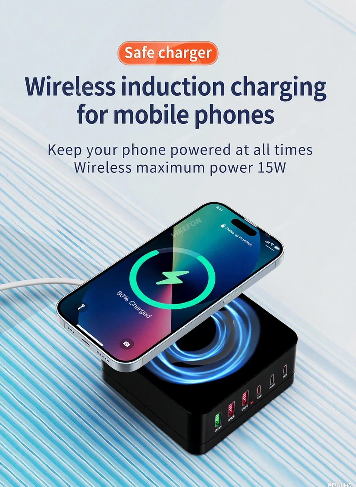 Estación de carga inalámbrica multifunción USB tipo C VIKEFON