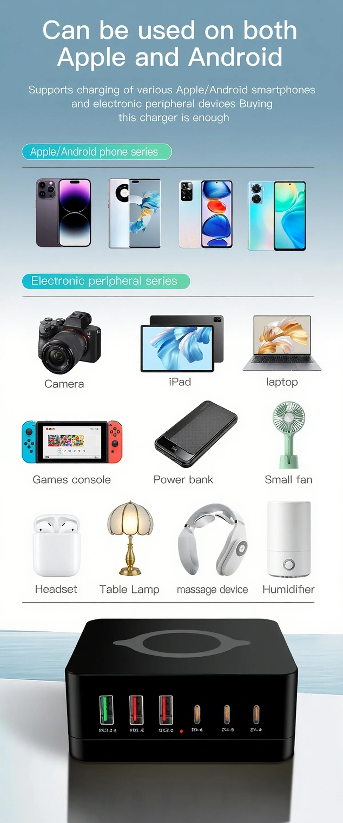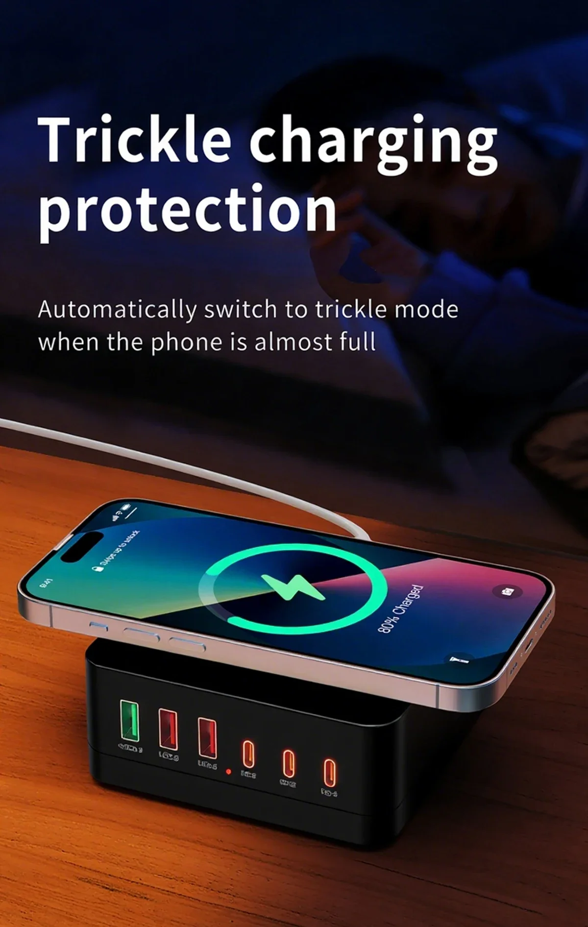 Todo en uno, 6 PUERTOS de 980 W con carga inalámbrica para todos los teléfonos/tabletas/portátiles y otros dispositivos.