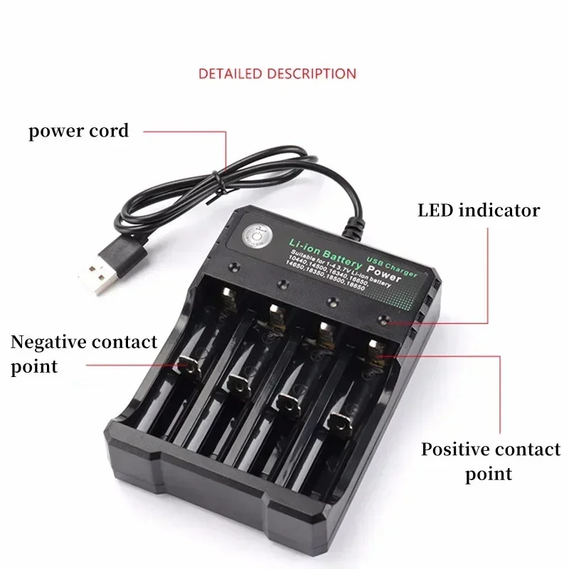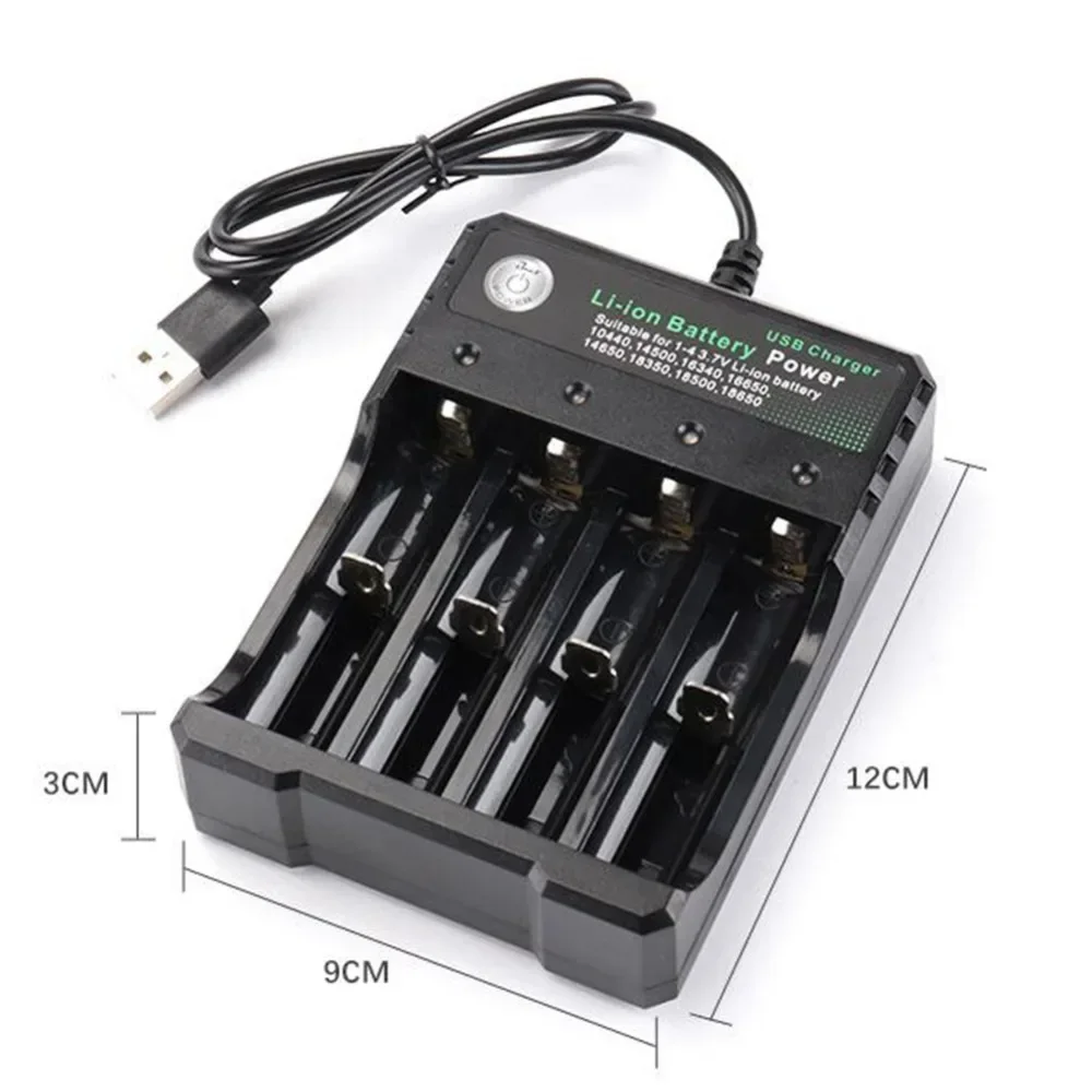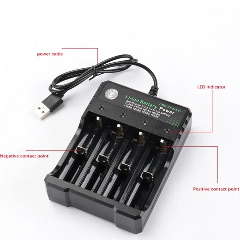 Cargador inteligente de batería de iones de litio de 3,7 V con 4 ranuras 18650, carga independiente para 10440 14500 16340 16650 14650 18350 18500 18650