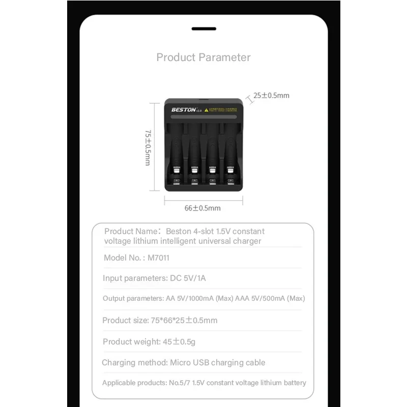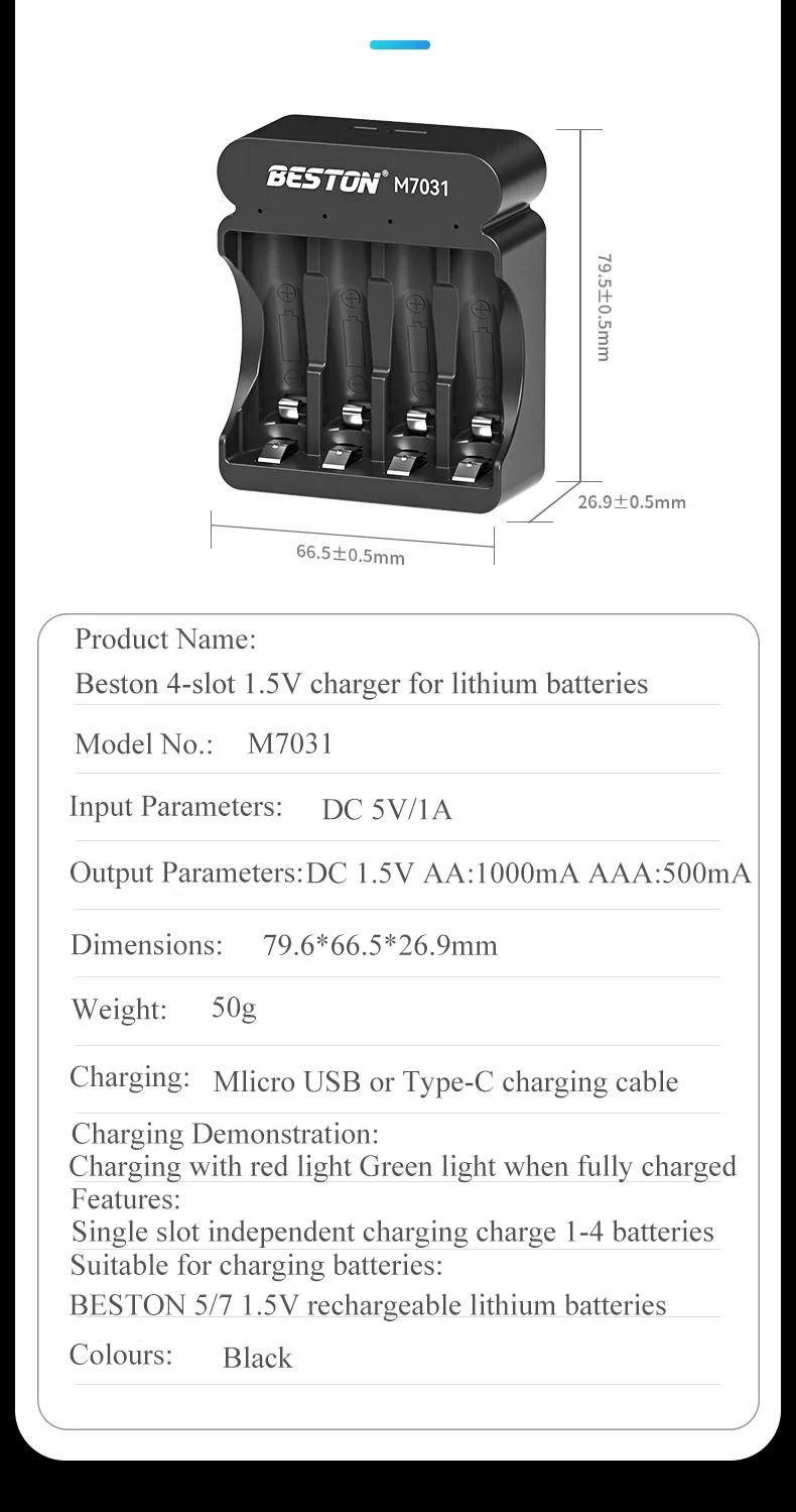 5. Adecuado para baterías de litio AA/AAA de 1,5 v tamaño 5/7