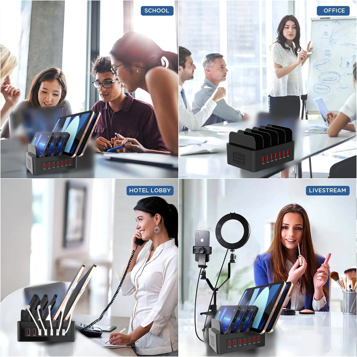 Funcionan correctamente y pudimos probar la carga simultánea de 4 teléfonos. No emite mucho calor, ofrece una buena organización para los teléfonos mientras se cargan y tiene un diseño estético. Ahora tengo una estación de carga incluso para mis invitados.