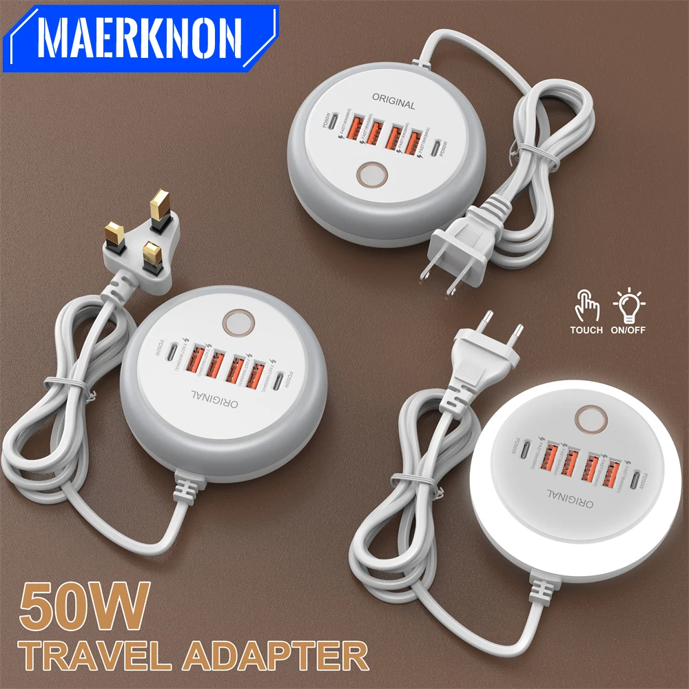 Cargador multipuerto 50W tipo C cargador de pared de carga rápida tira de alimentación para iPhone Samsung Xiaomi cargador de teléfono de carga rápida de 6 puertos