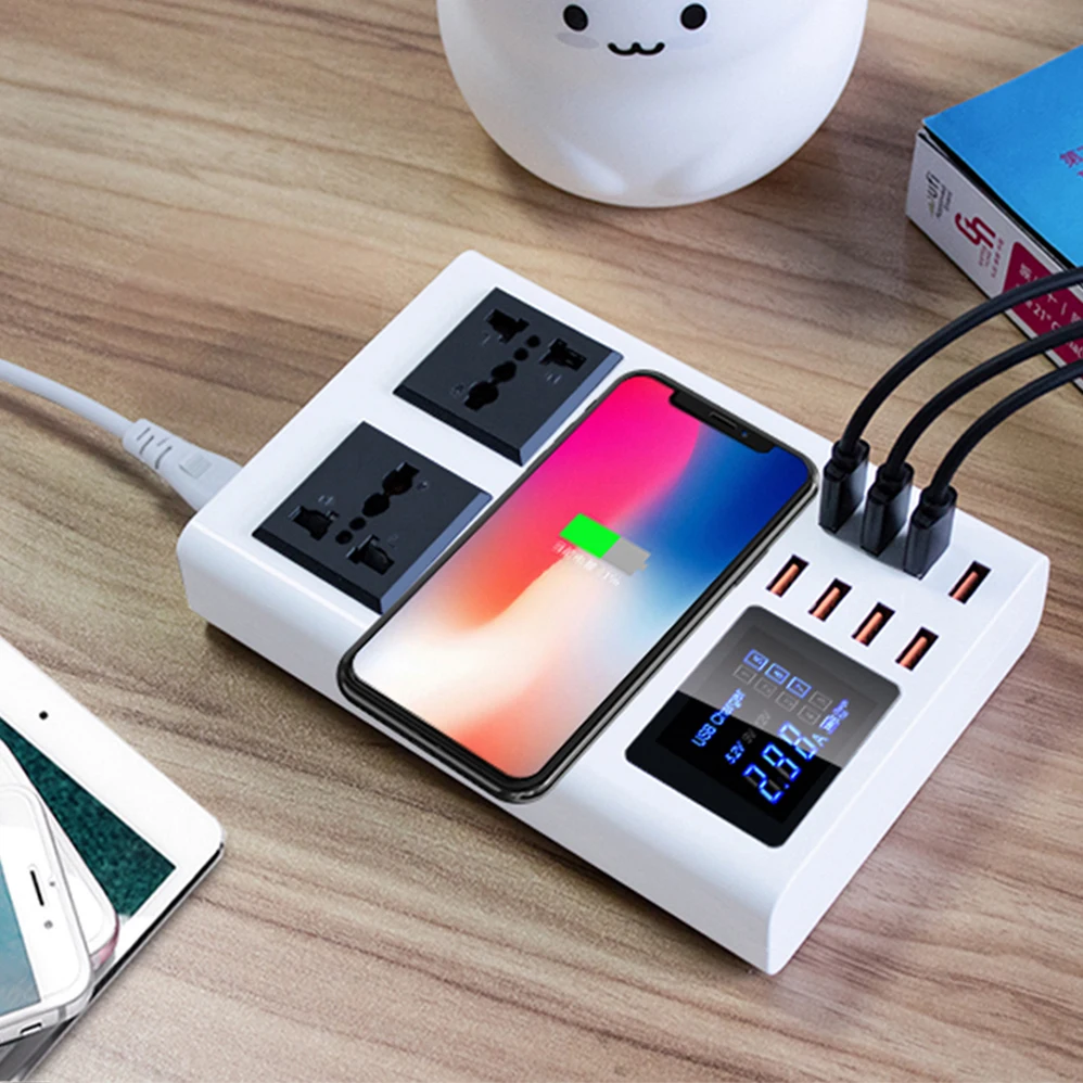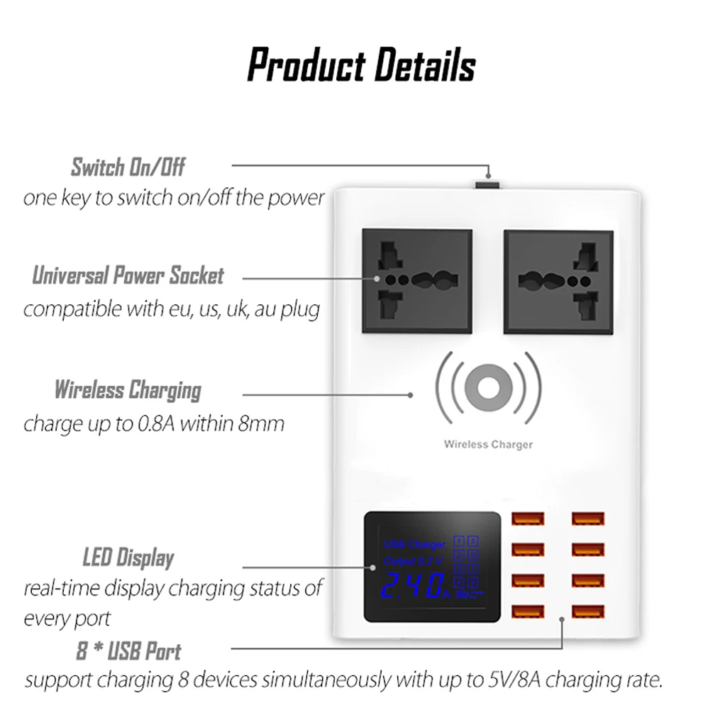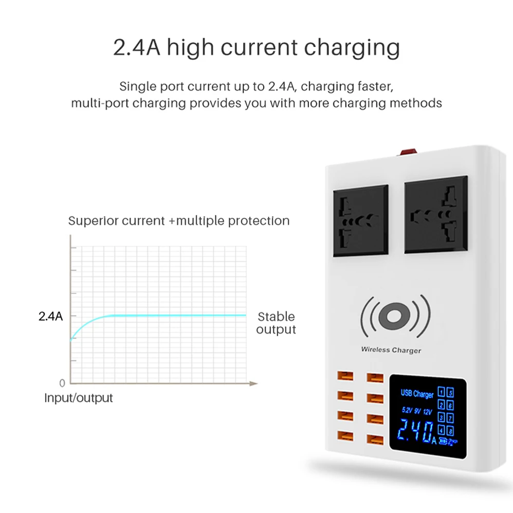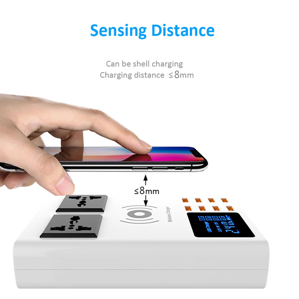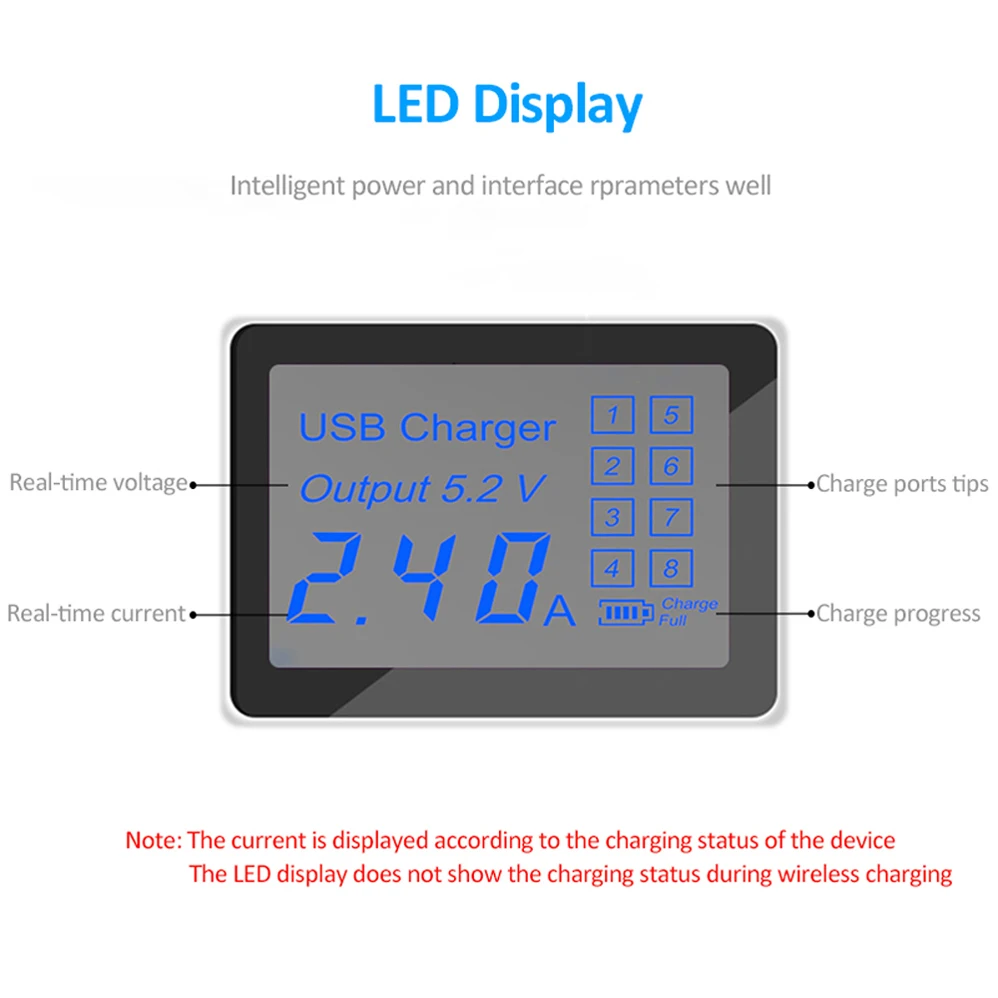 8 puertos USB con cargador inalámbrico de varias capacidades de salida para satisfacer sus necesidades