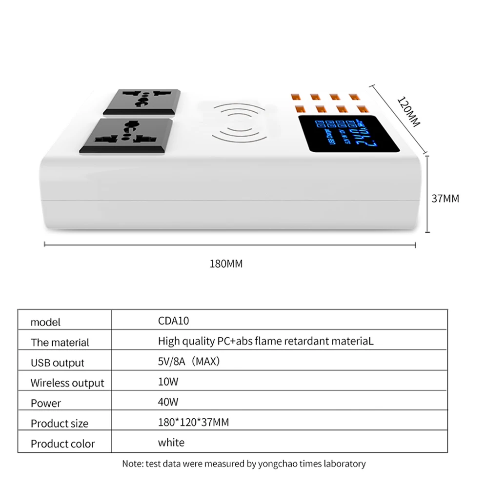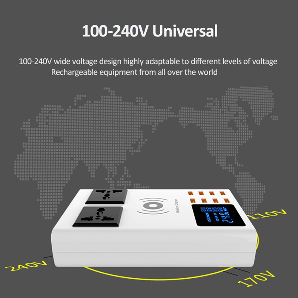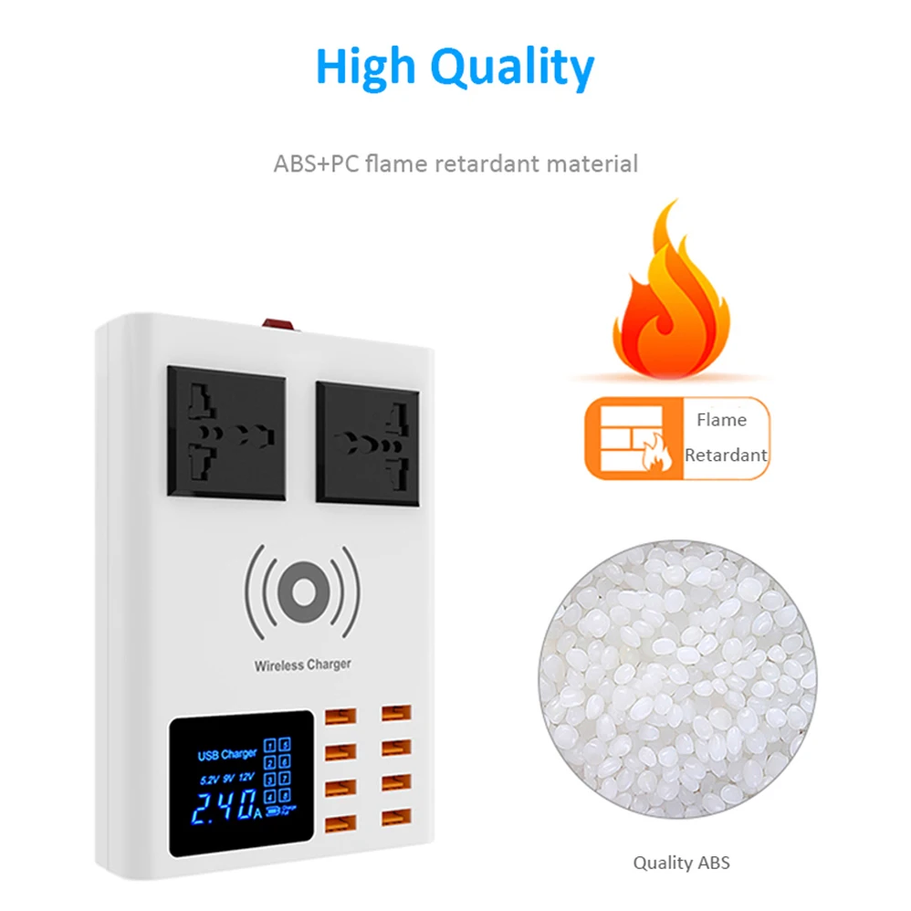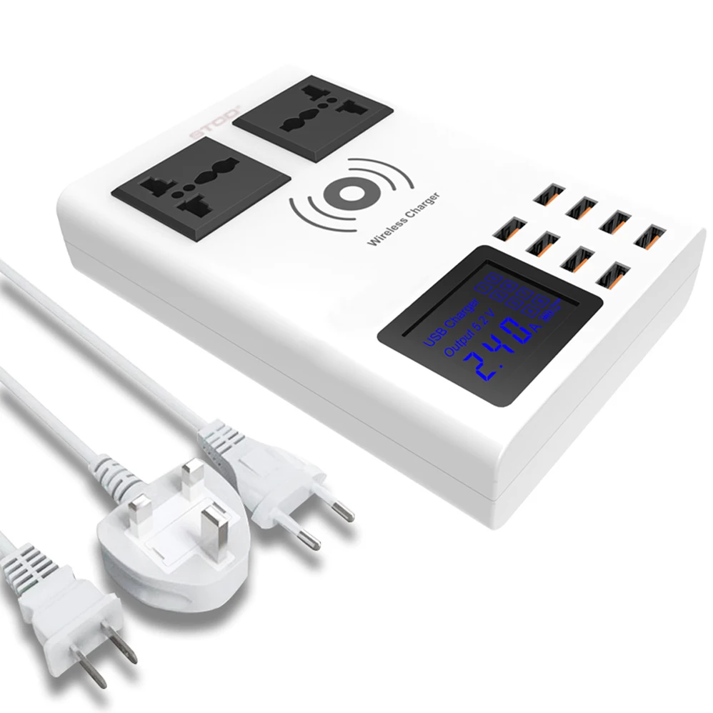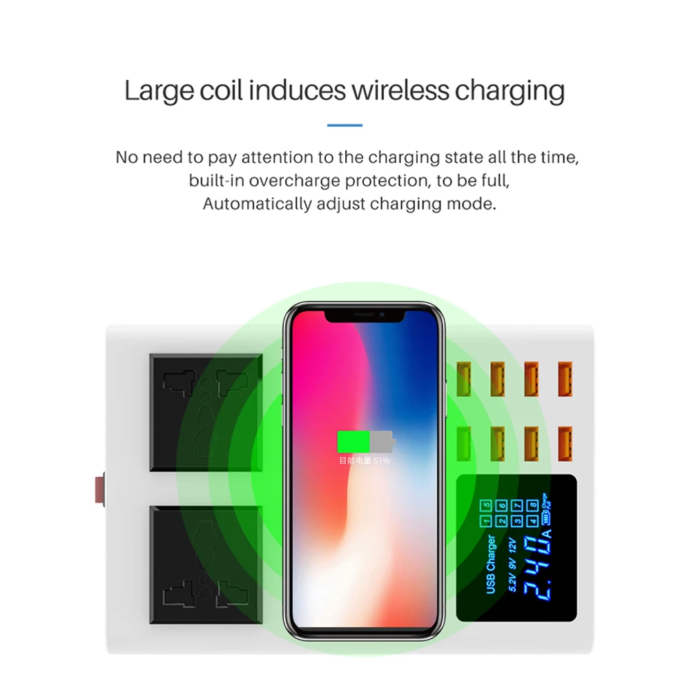 8 puertos USB con cargador inalámbrico de varias capacidades de salida para satisfacer sus necesidades