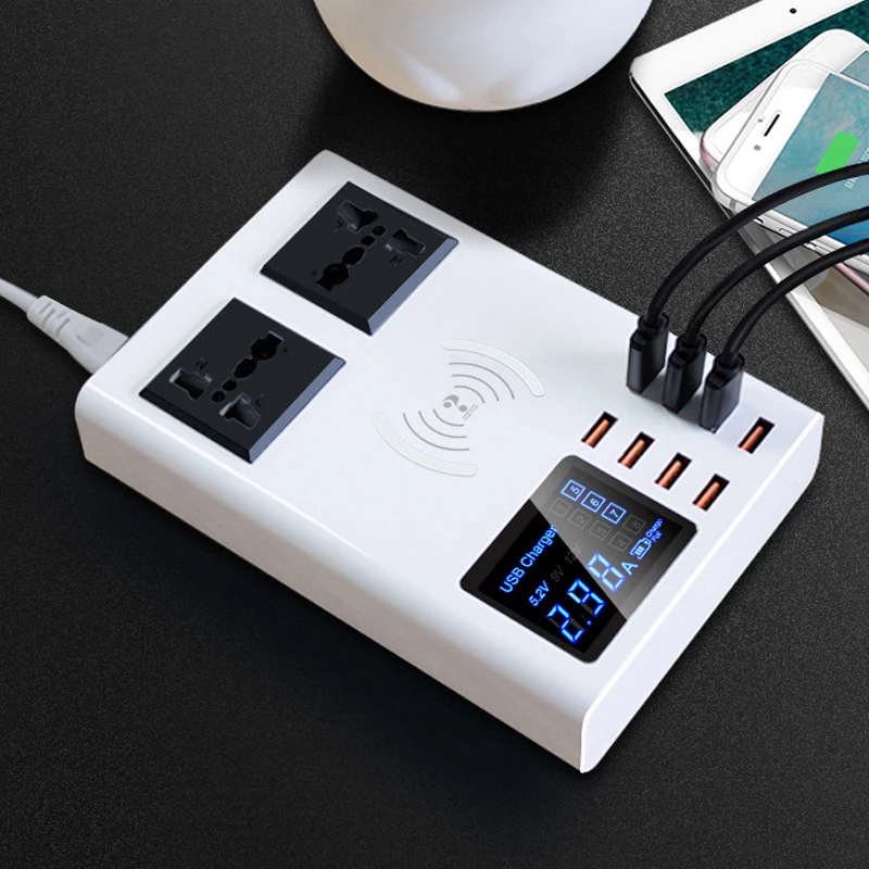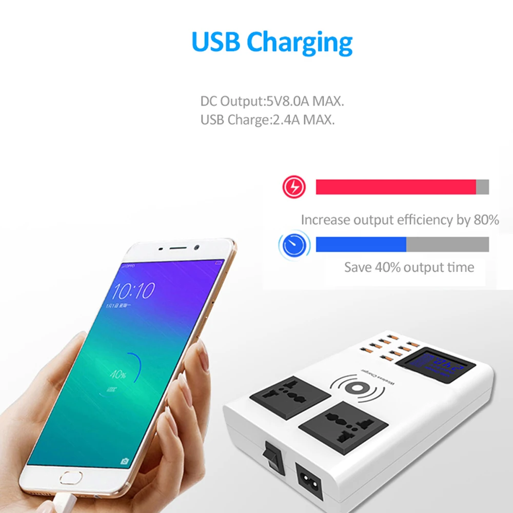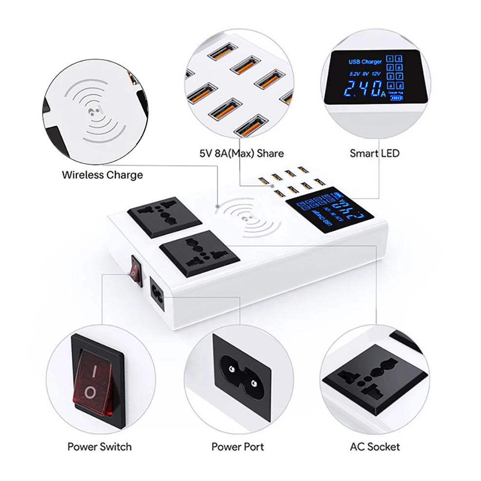 8 puertos USB con cargador inalámbrico de varias capacidades de salida para satisfacer sus necesidades