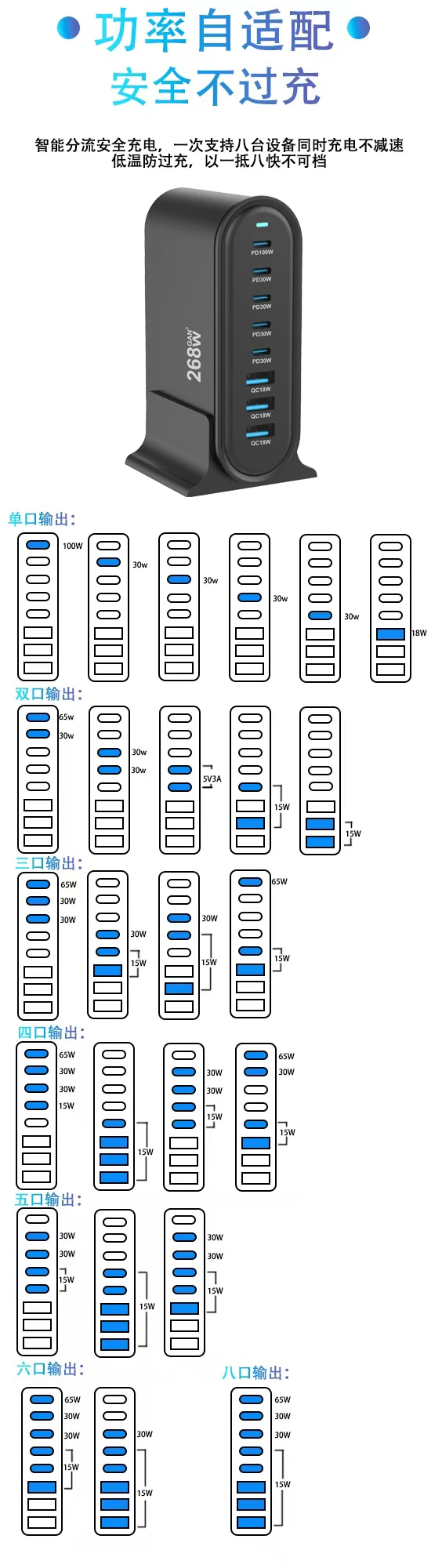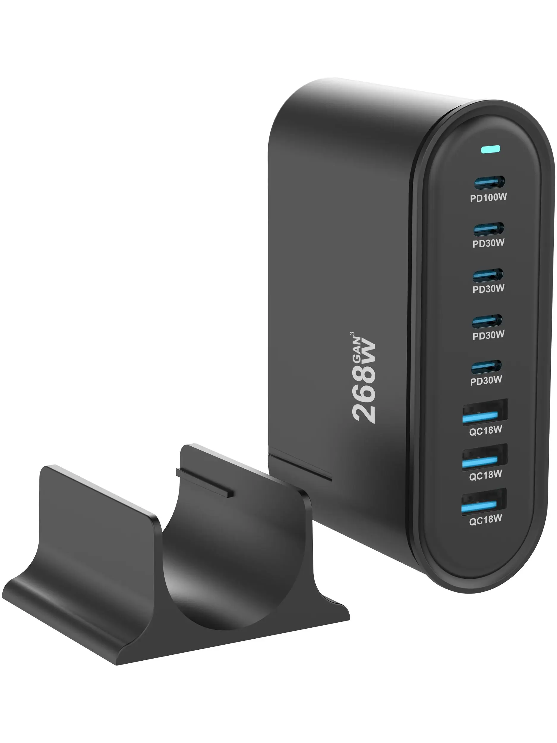 Cargador GaN de escritorio de 268W, cargador PD tipo C USB de 8 puertos, carga rápida 3,0, cargador rápido USB tipo C, cargador USB móvil