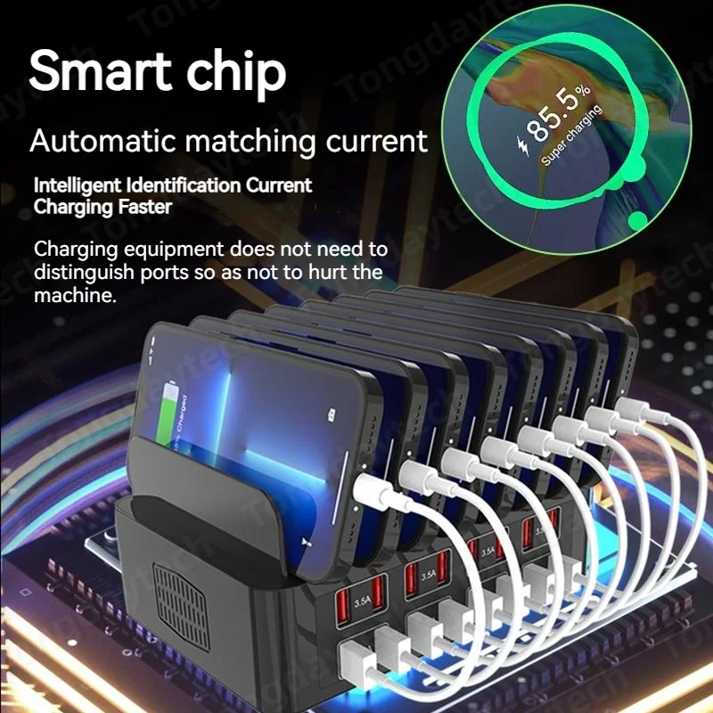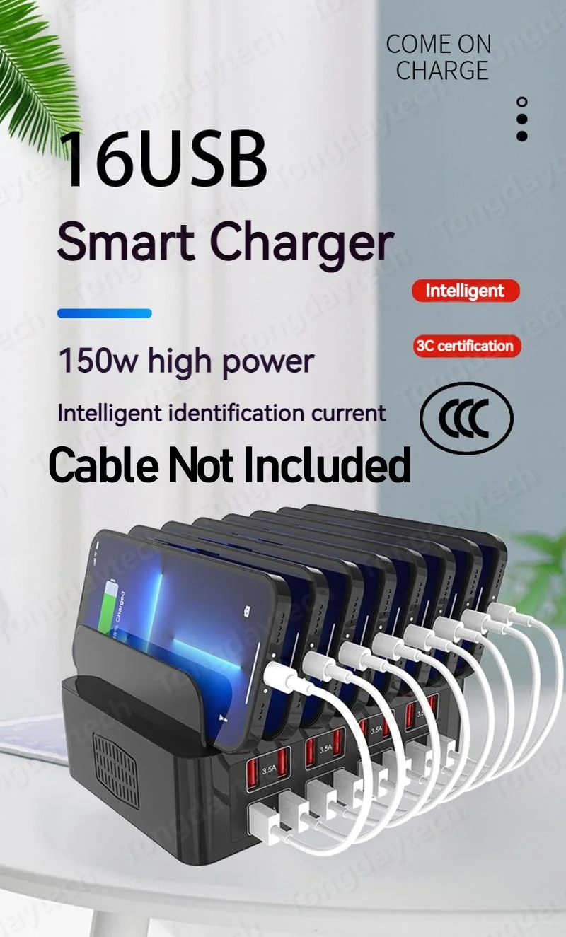 Cargador USB múltiple de 150W, estación de carga rápida de 16 puertos para tableta para iPhone 14 13 Pro Max Ipad Samsung S23 S22 S21 S20