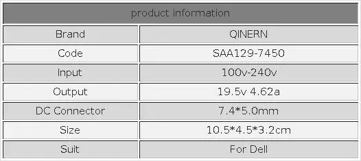 DC voltaje/corriente de salida: 19,5 V 4.62A