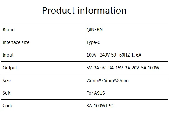 Nombre del artículo: 20V5A 100W tipo C para ASUS