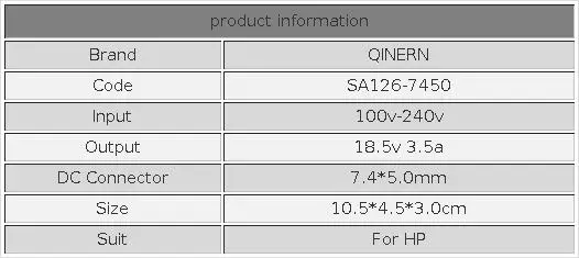 Artículo: 65W 18,5 V 3.5A Adaptador de corriente para computadora portátil