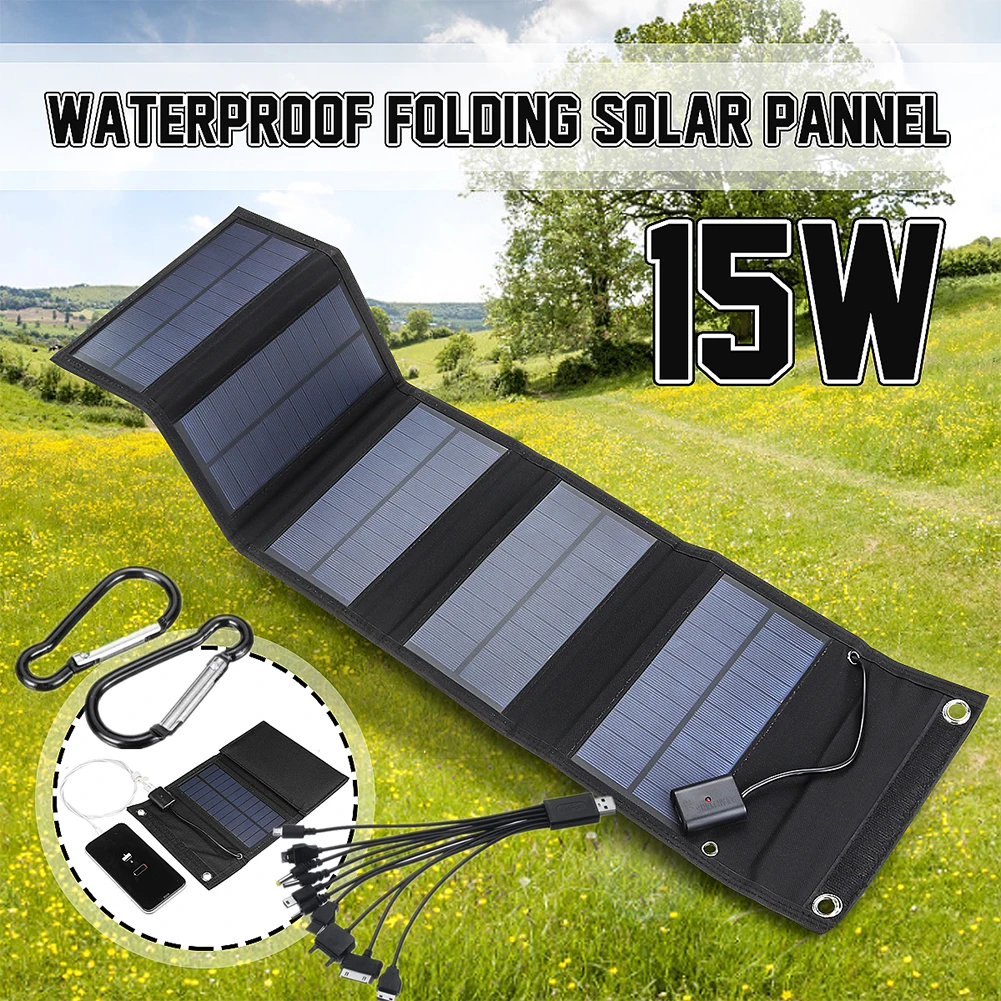 Comprar Cargador de Panel Solar plegable, placa Solar de 30W, 5V, USB, portátil, batería de teléfono, Banco de energía impermeable para exteriores