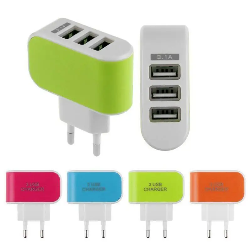 Comprar Cargador de pared con 3 puertos USB, adaptador de corriente de CA para teléfono móvil, portátil, Universal