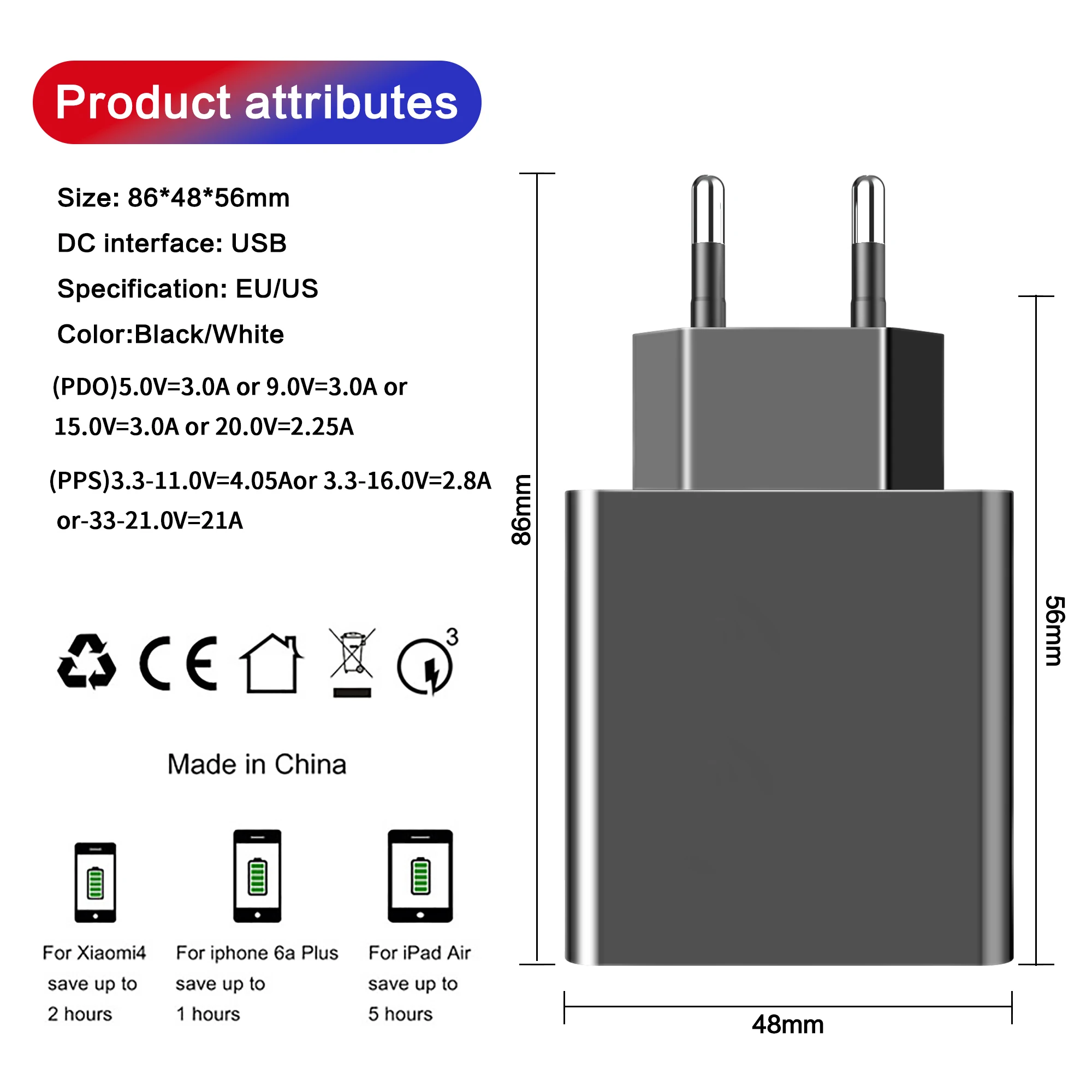 Cargador de pared rápido PD USB-C de 45W para Samsung S24 S23 S22 S21 Plus Note 10