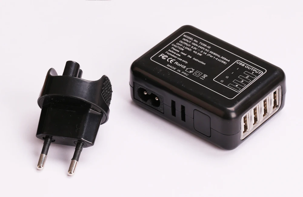 Voltaje de salida: DC 5V, 2.1A clasificado total de 4 puertos USB.