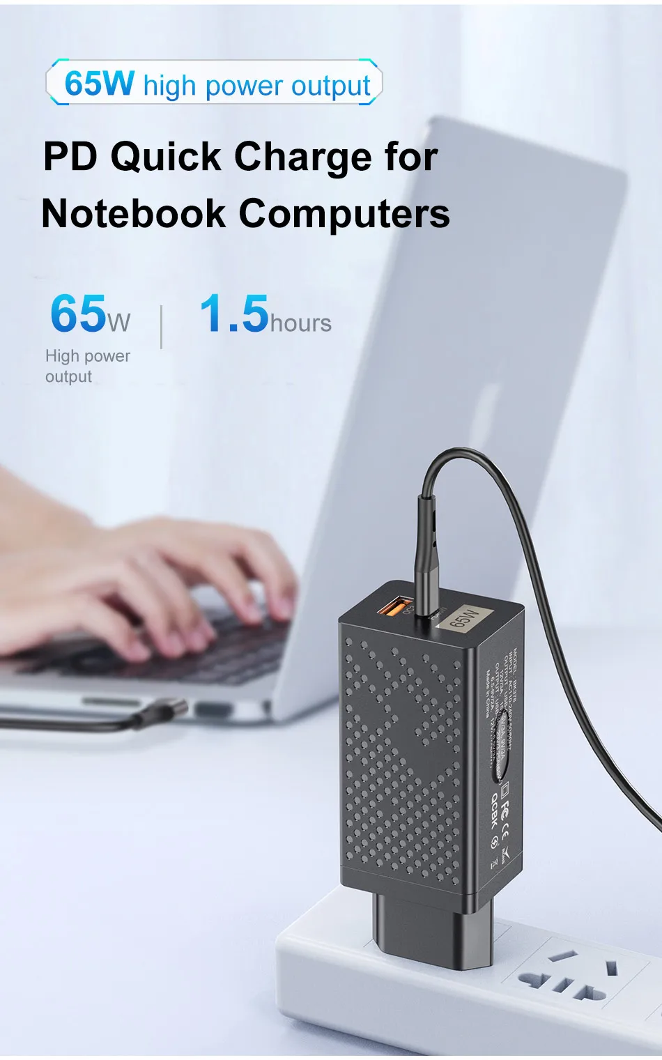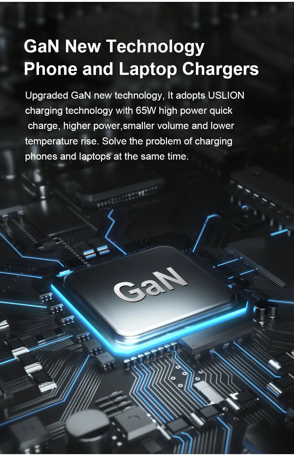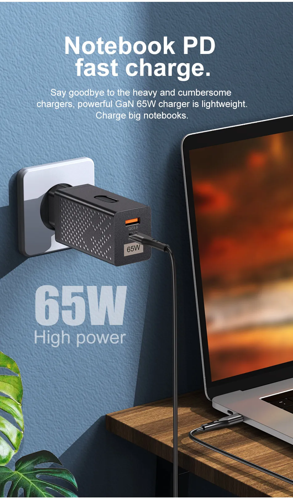 Comprar Cargador PD de 65W GaN para Macbook, iPad, portátil, tableta, adaptador de carga rápida QC3.0 para iPhone 14, 13 Pro, Max, 12 Xiaomi, Samsung S22, Poco