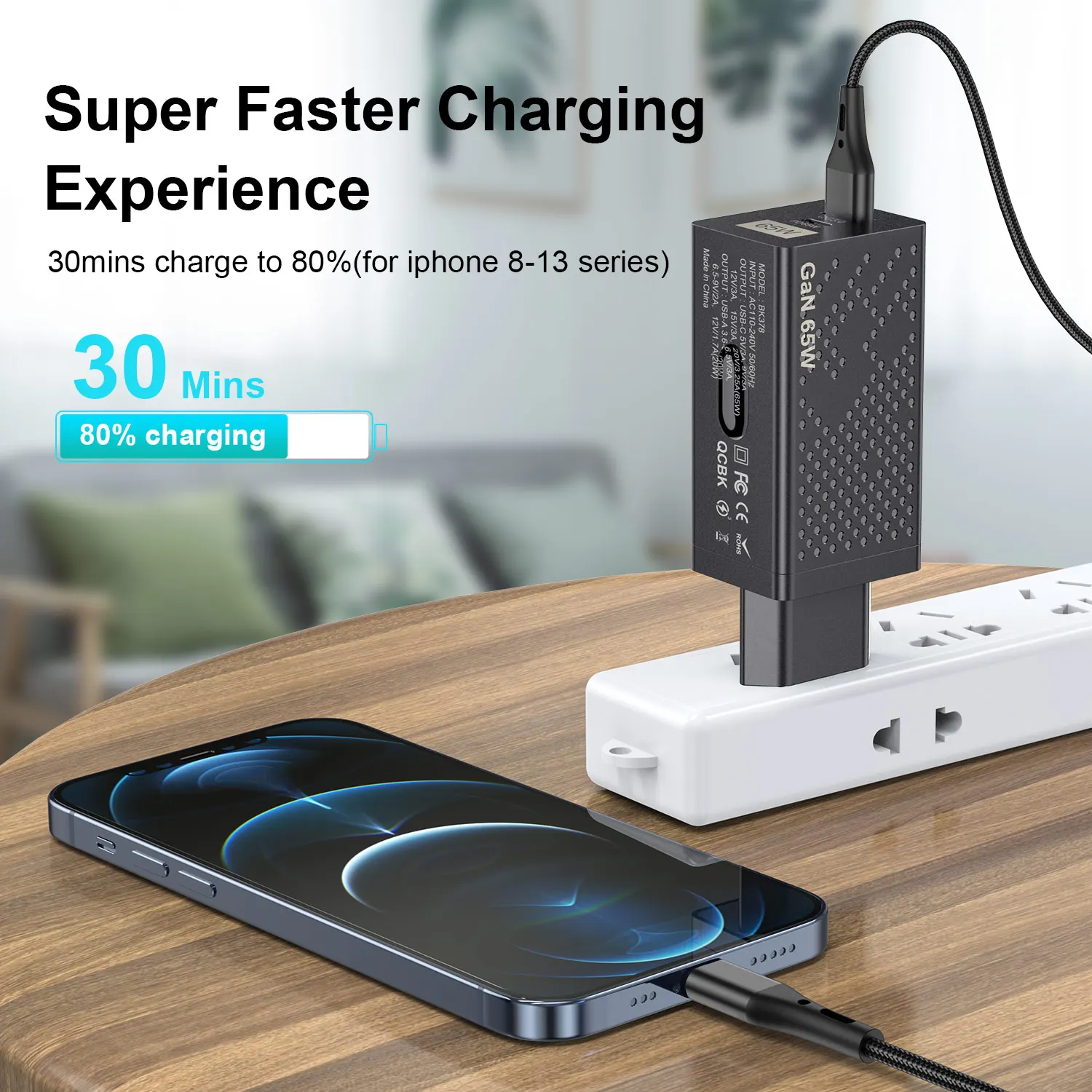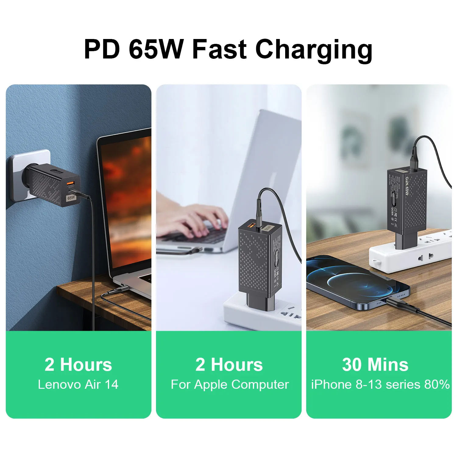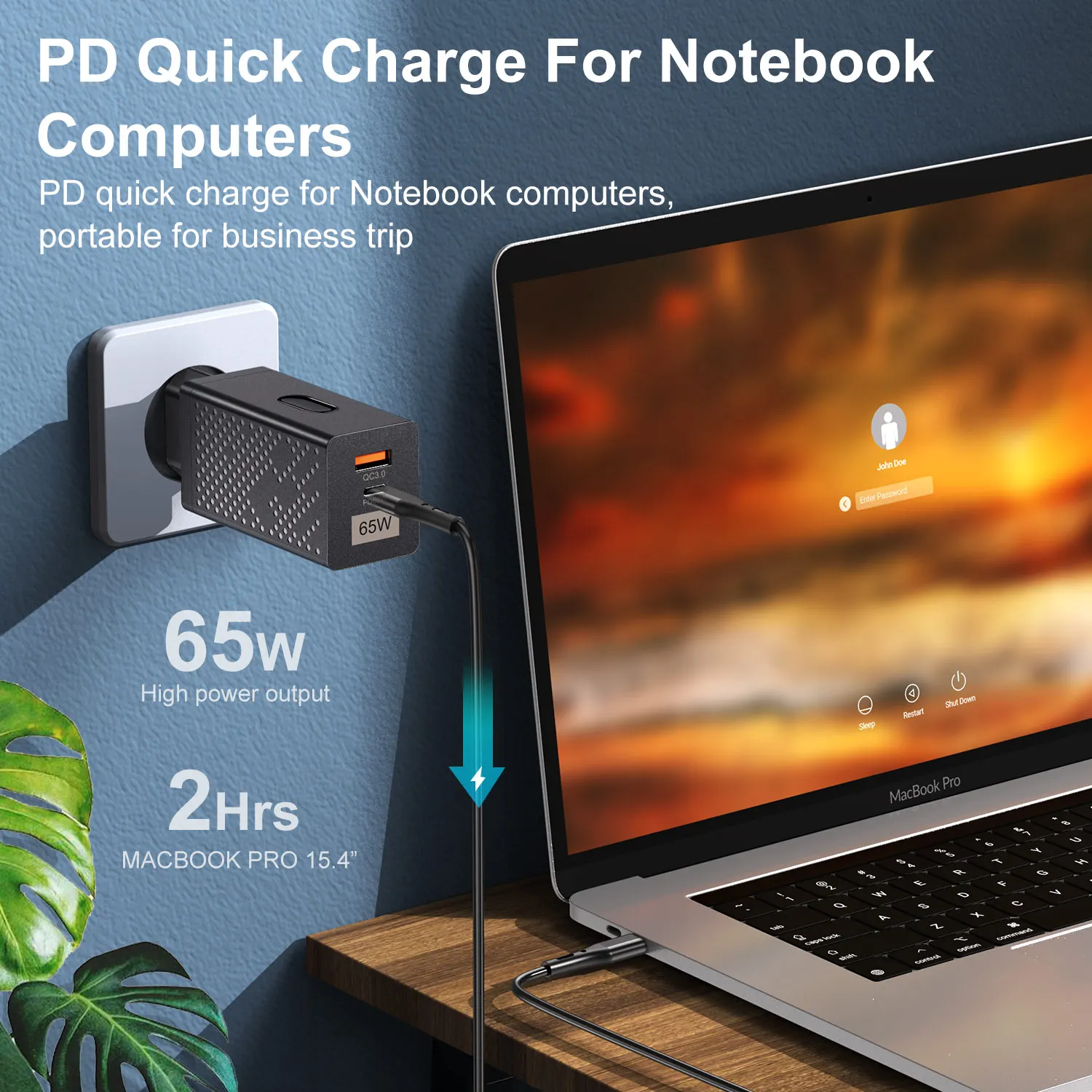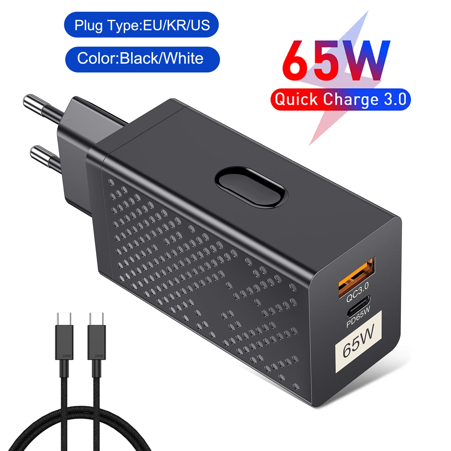 Comprar Cargador PD de 65W GaN para Macbook, iPad, portátil, tableta, adaptador de carga rápida QC3.0 para iPhone 14, 13 Pro, Max, 12 Xiaomi, Samsung S22, Poco