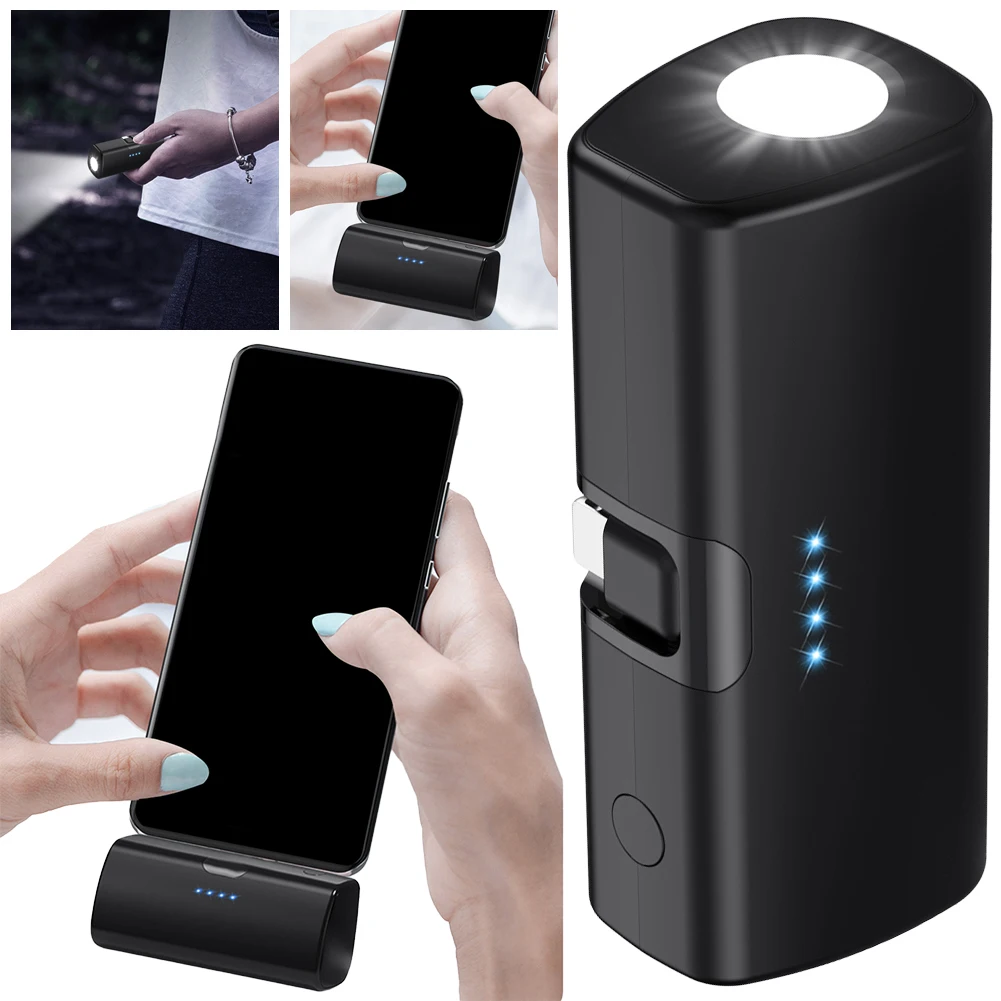 Banco de energía para teléfono externo, linterna LED de 5000mAh/3000mAh, Mini cargador portátil tipo C, Banco de energía de carga rápida para iPhone Huawei