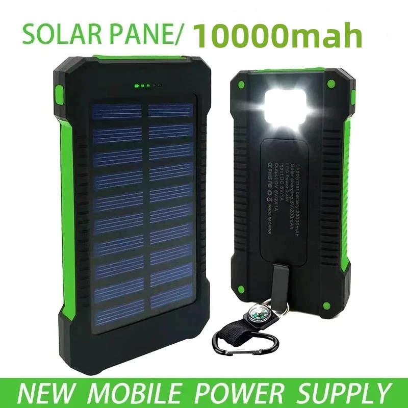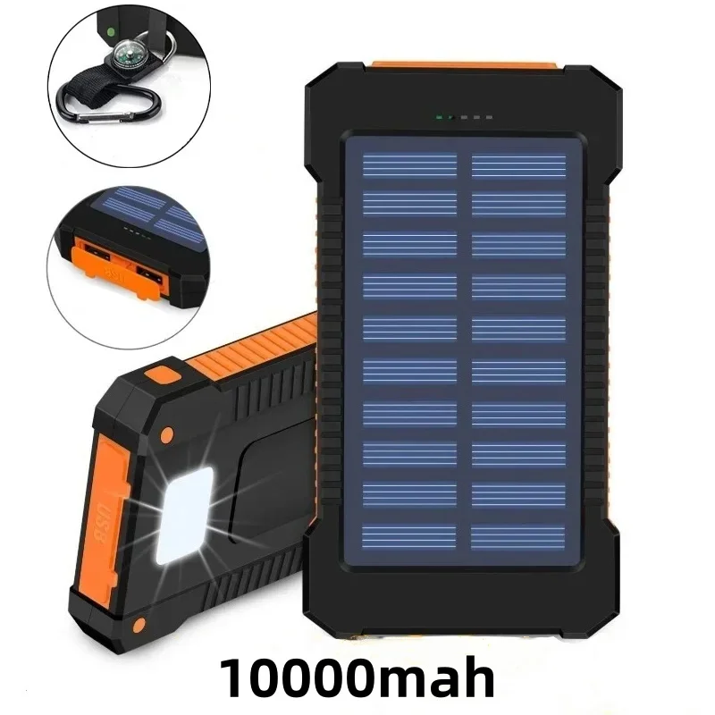 Comprar Cargador rápido de 10000mAh, carga Solar, resistente al agua, gran capacidad, batería externa para teléfono móvil, equipo de carga portátil para exteriores