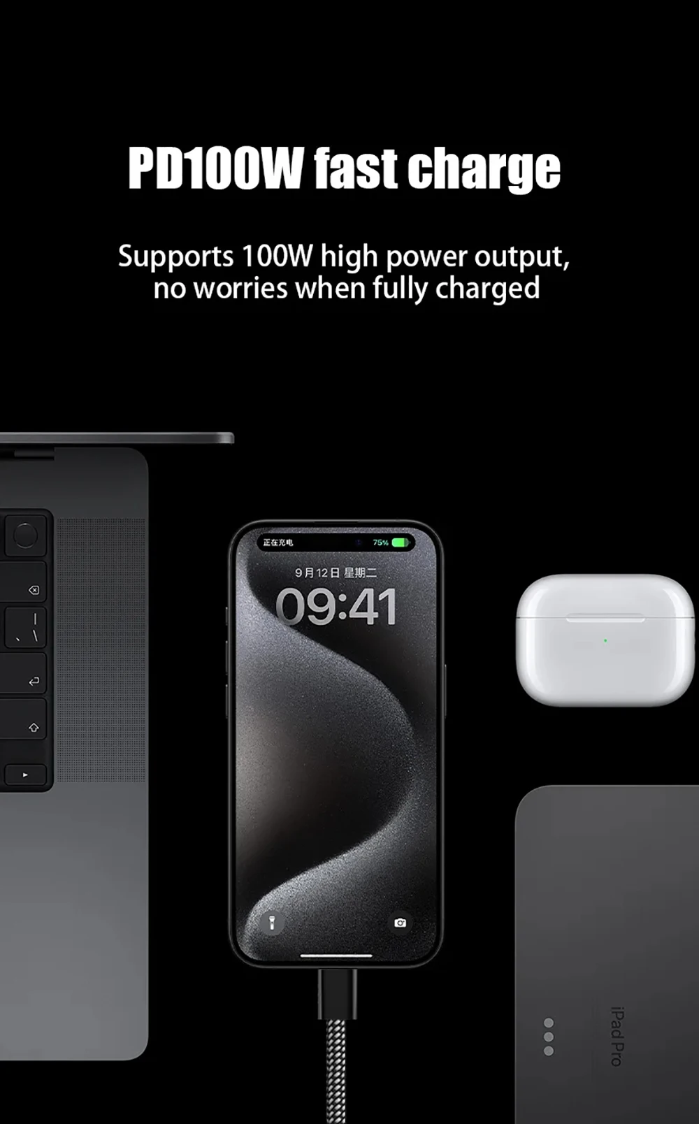 Tipo C a C: MAX100W (compatible con la serie iPhone17/16/15, Samsung y otros teléfonos Android)