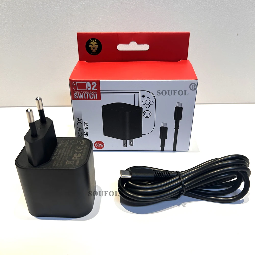 Cargador de repuesto para Switch 2: El adaptador de CA del cargador de 60 W te proporciona suficiente energía para disfrutar del juego.También es compatible con Switch/Switch Lite/Switch OLED/Xbox Controller, Steam Deck y Type C Controller, tabletas, computadoras portátiles y teléfonos.Adaptador de CA de carga rápida, larga vida útil duradera: El cargador rápido de 60 W identifica inteligentemente sus dispositivos y proporciona la corriente de salida más rápida y eficiente.Entrada: 100-240 V~50/60 Hz 1,6 A; Salida: 5V 3A/15V 3A/9V 3A/20V 3A.Cable cargador de 5,9 pies para Switch 2: El adaptador de CA para interruptor 2 viene con un cable integrado tipo C extralargo de 5,9 pies que le brinda suficiente cable para llegar a un tomacorriente.Más de 5000 curvas probadas del cable garantizan una vida útil más larga del cable.Cargador USB tipo C PD3.0: El cargador para Switch 2 cuenta con protección contra sobrecarga/sobrecorriente/sobrecalentamiento/cortocircuito, sin preocuparse por daños a los dispositivos funcionales Steam Deck/Switch/Switch Lite/Switch OLED.Súper compacto y lo que obtendrás: El adaptador de 60 W para Switch 2 es fácil de transportar y almacenar, por lo que el cargador cabe perfectamente en un pequeño bolsillo dentro de la bolsa de su computadora portátil.