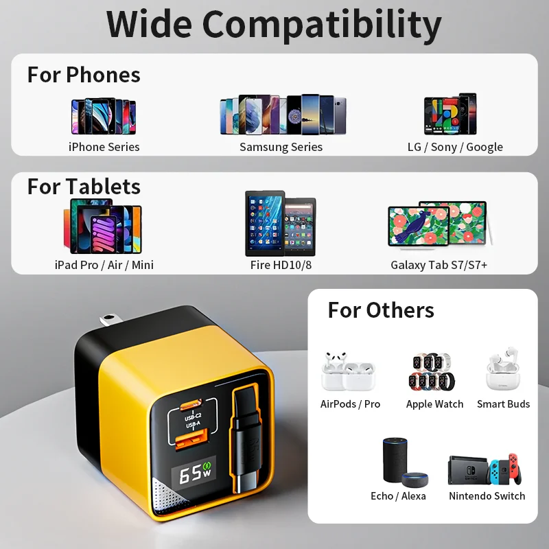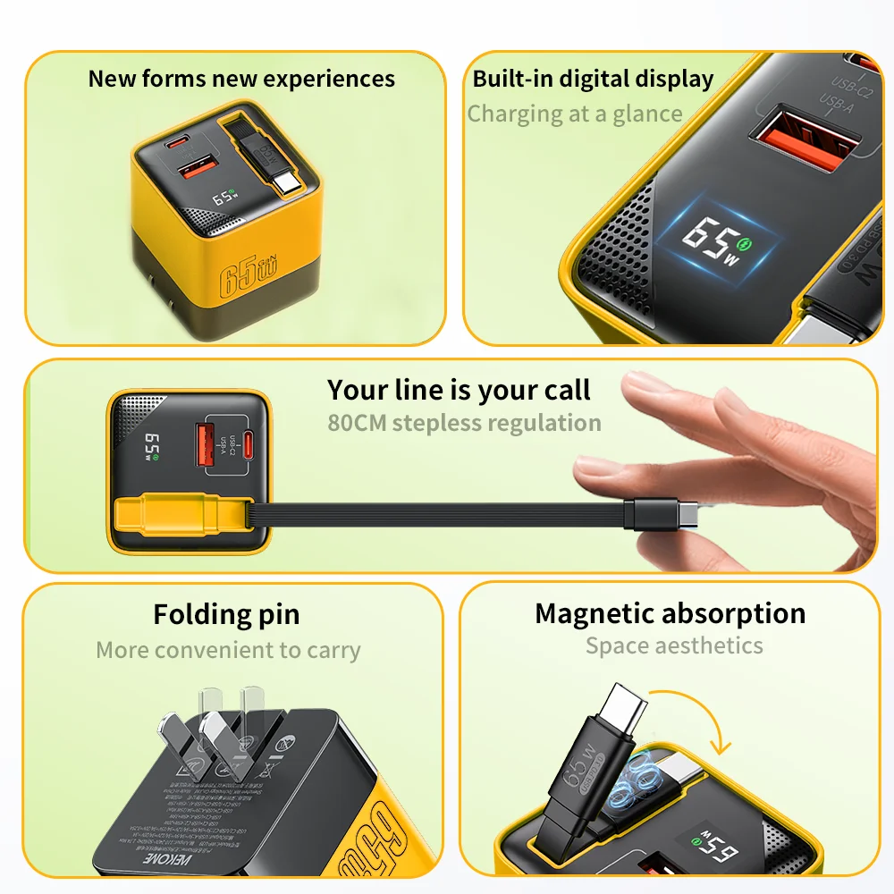Puede cargar a un máximo de 65W, y el cable de carga incluido también es excelente. Es un producto excelente y muy recomendado.