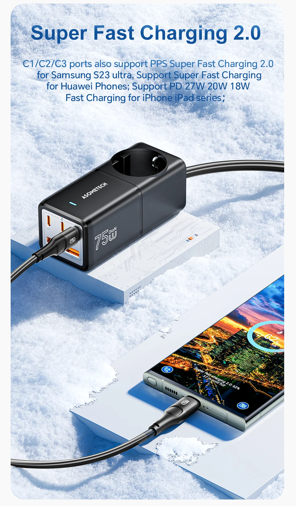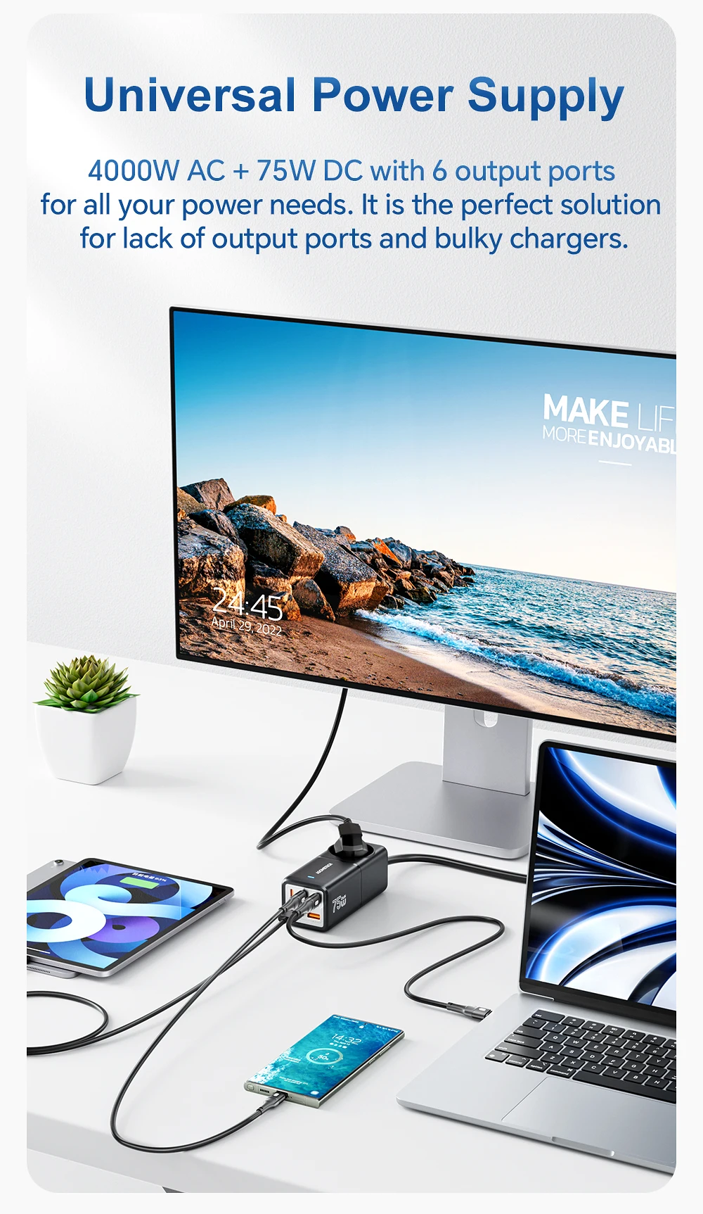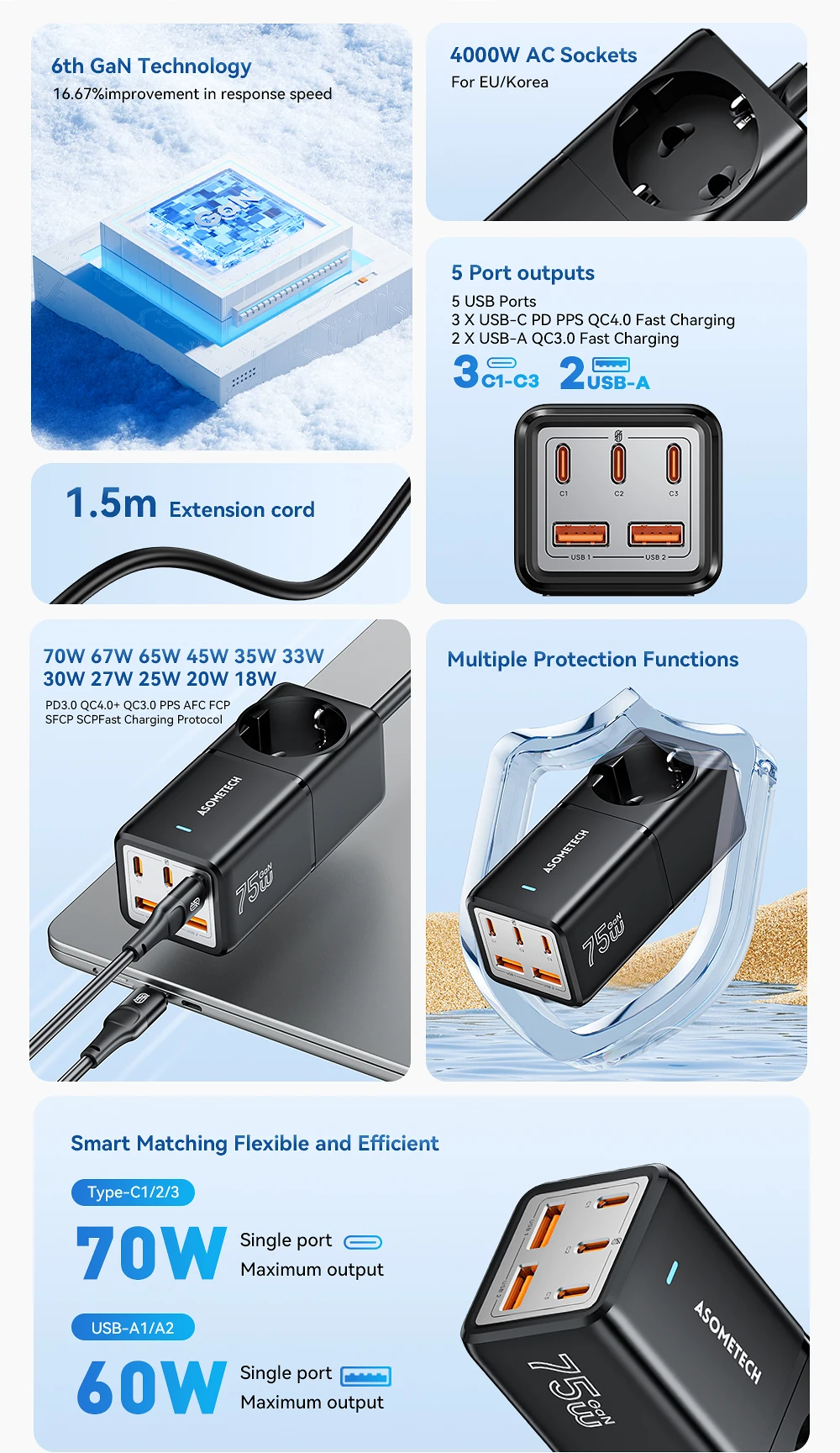 Comprar Cargador rápido de escritorio GaN de 75W QC4.0 3,0 PD3.0, estación de carga para IPhone 14, 13 Pro Max, Xiaomi, Samsung, MacBook, portátil