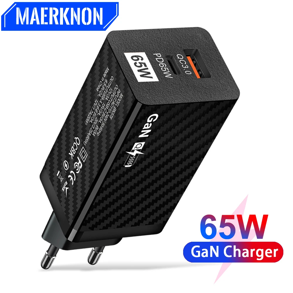 Comprar Cargador rápido GaN 3,0 de 65W, adaptador de corriente de teléfono móvil tipo C PD para iPhone 14, 13, Xiaomi, Samsung, cargador de pared