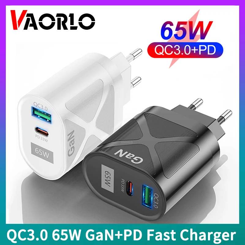 Comprar Cargador rápido GaN de 65W, enchufe tipo C PD + QC3.0 USB 5V/6.6A 9V/3A 12V/2.75A 20V/1.67A, Cable de carga rápida para Xiaomi y iPhone