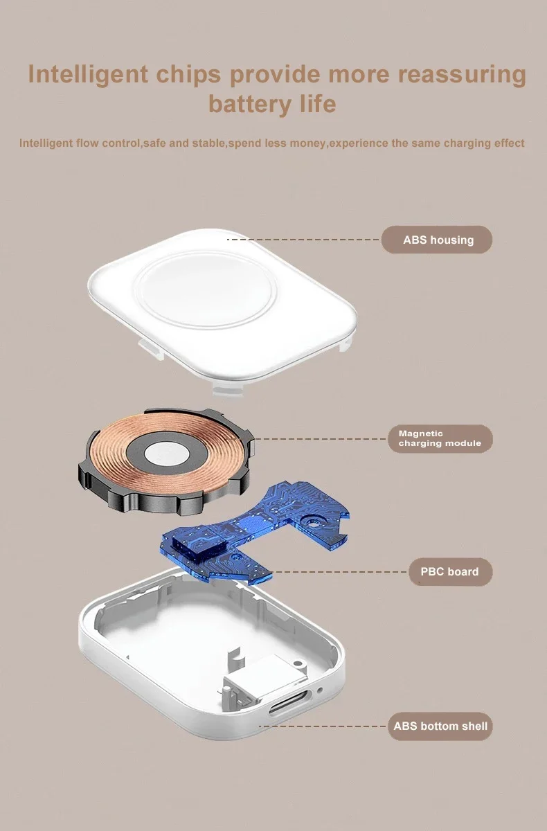 2. Wireless Design: No need for additional charging cables, eliminating the hassle of wire entanglement! The wireless design makes it easier for you to carry without worrying about tangled charging cables. It's the best choice for you to take with you.