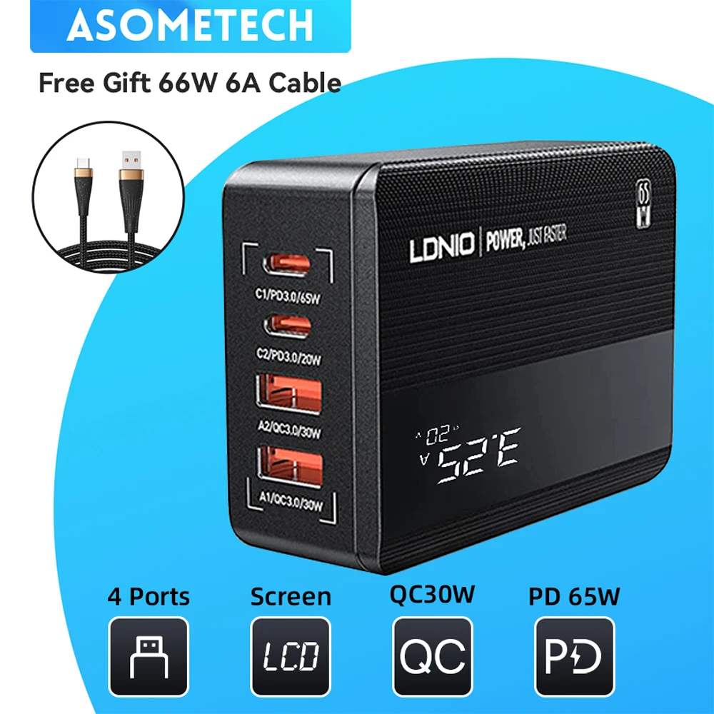 Comprar Cargador rápido múltiple para Iphone 12, 13 Pro Max, Samsung, Xiaomi, portátiles, carga rápida, 4 puertos USB, 65W, QC 3,0