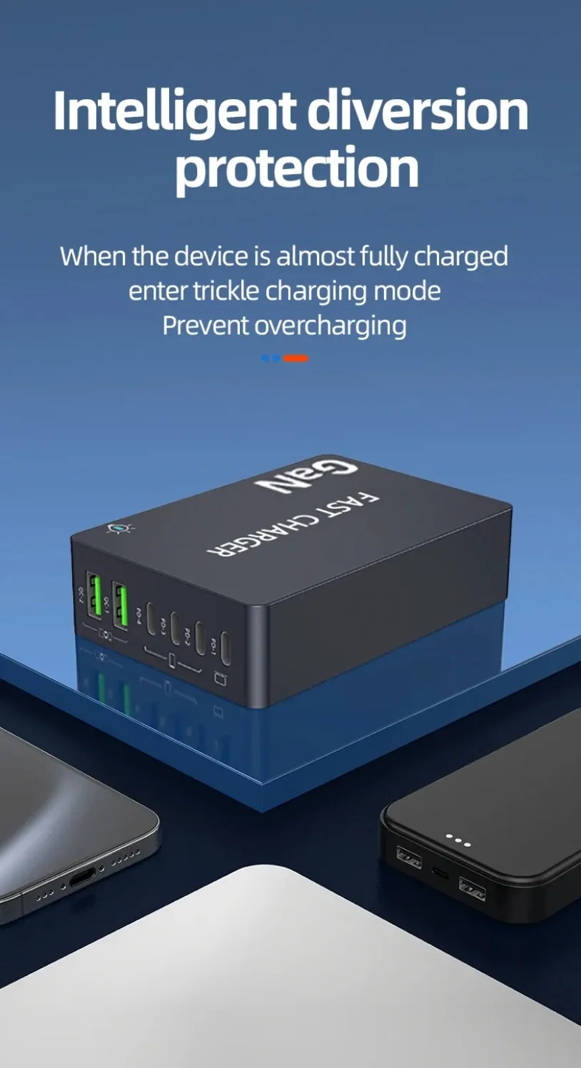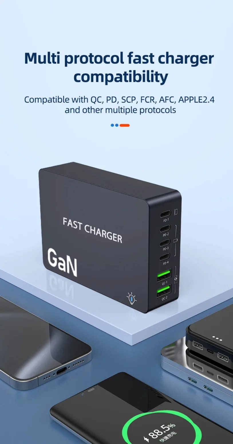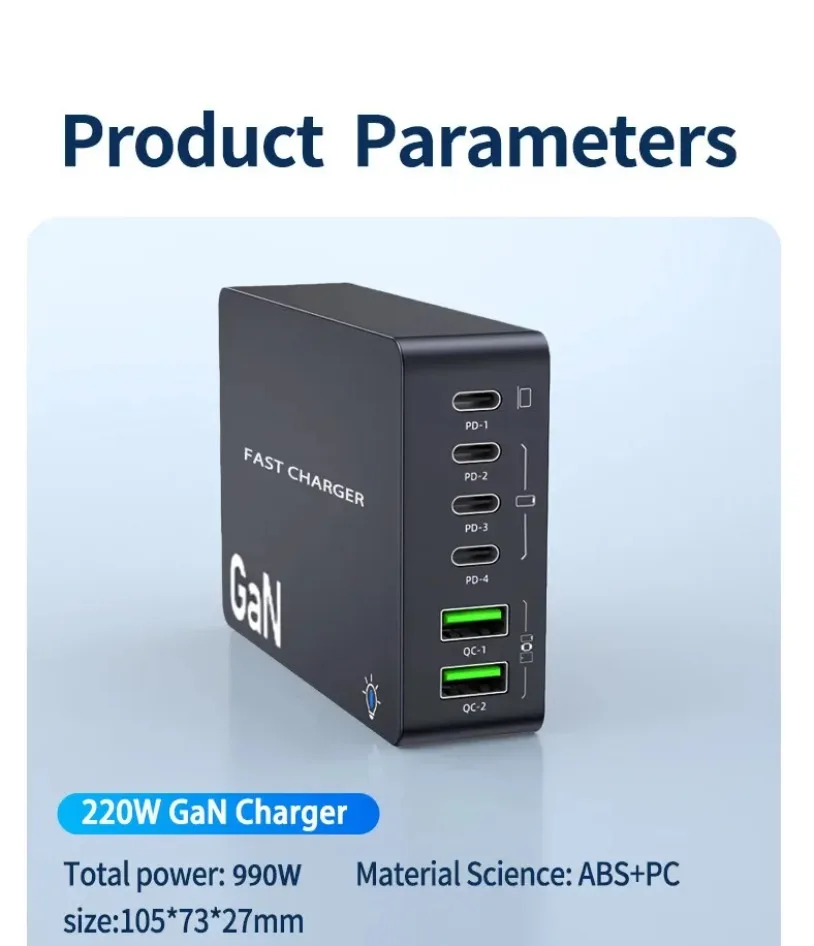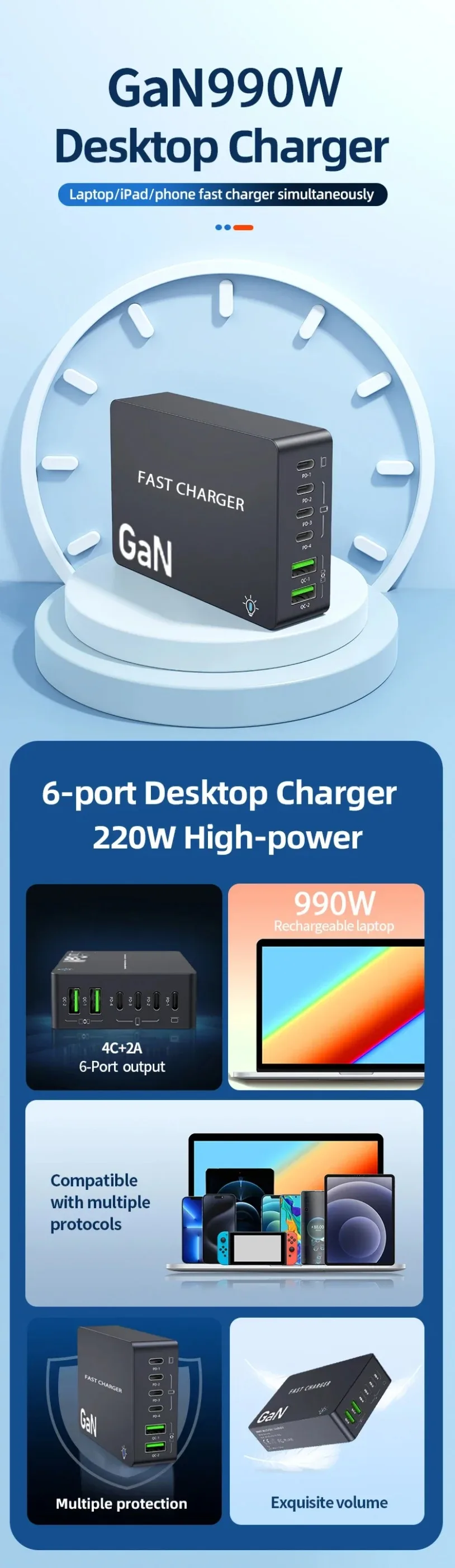 Todo en uno 990W 6 PORTAS (4 USB C + 2 USB A) para todos los teléfonos/tabletas/portátiles y otros dispositivos.