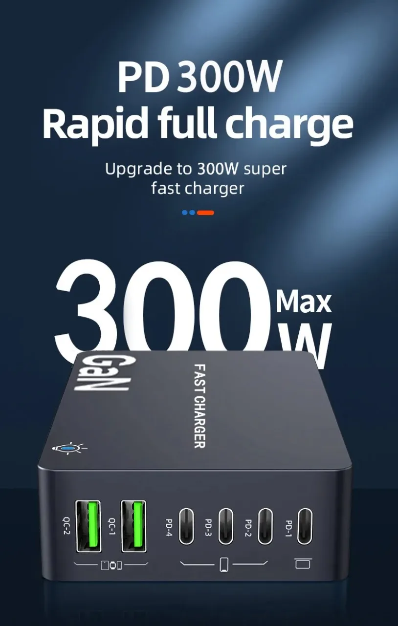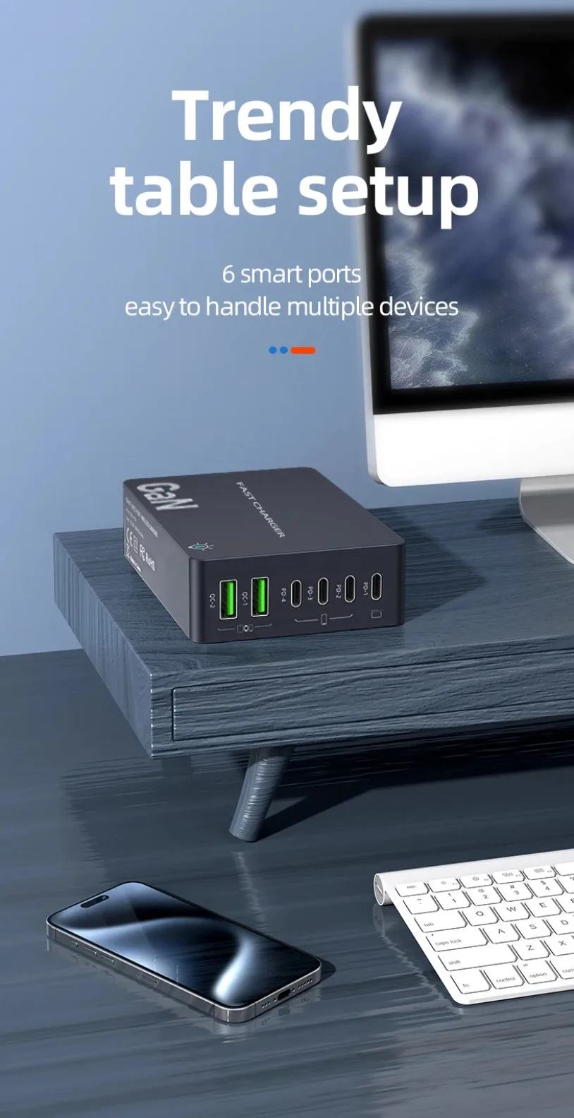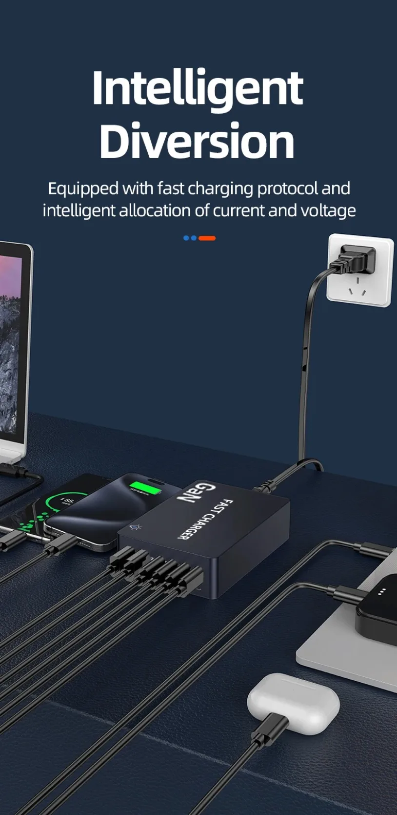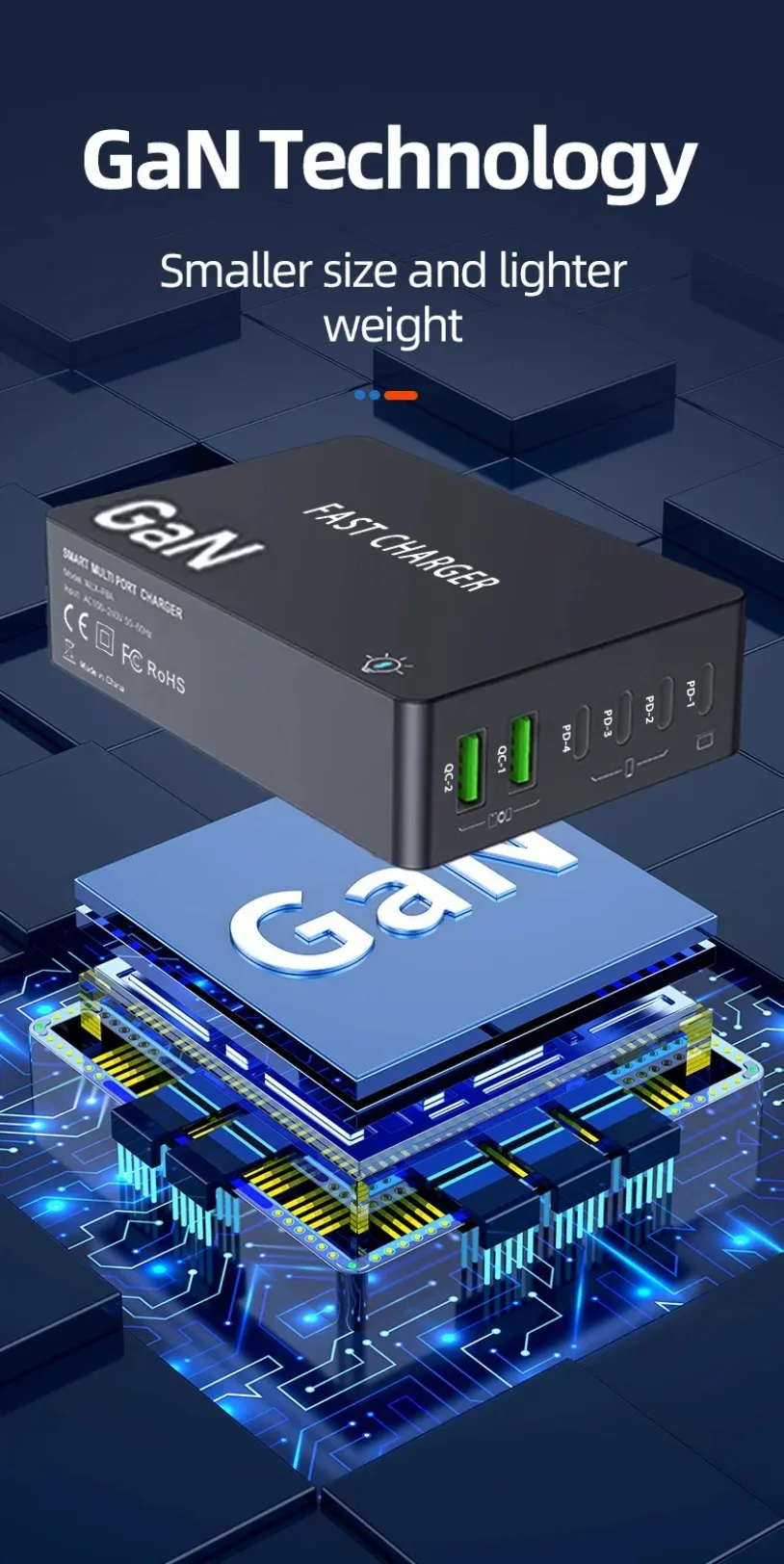Todo en uno 990W 6 PORTAS (4 USB C + 2 USB A) para todos los teléfonos/tabletas/portátiles y otros dispositivos.