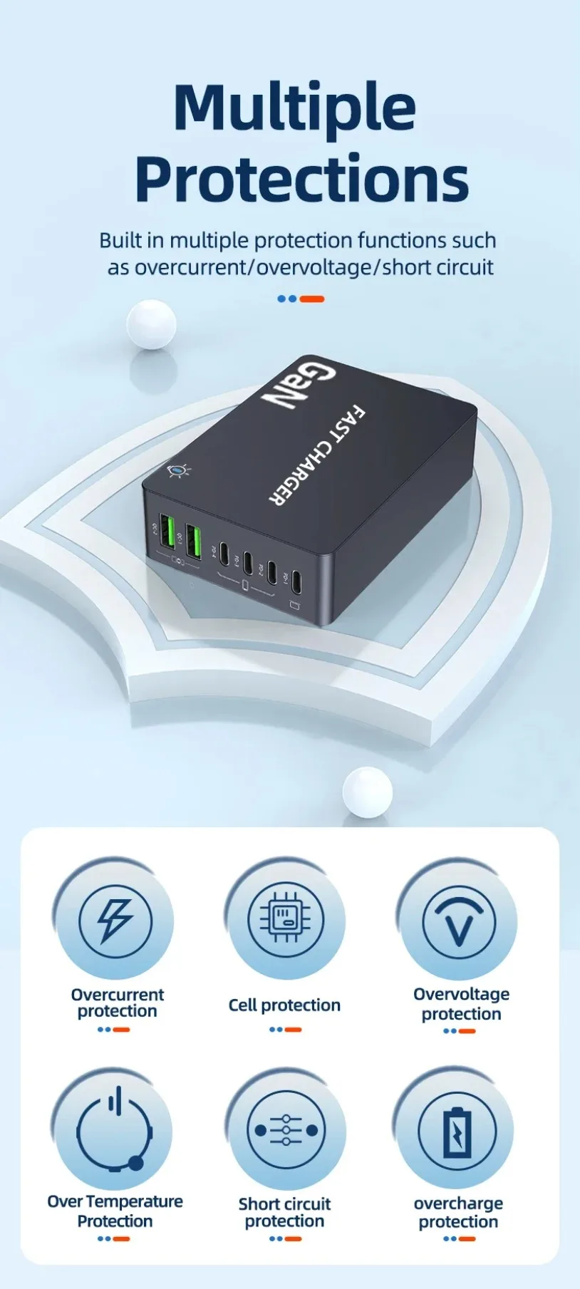 1. Múltiples protecciones integradas protegen completamente contra sobrecorriente, sobrecarga y sobrecalentamiento para una carga rápida y segura.
