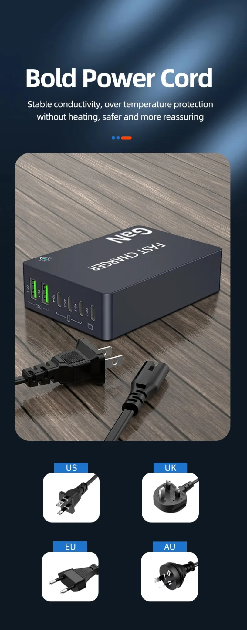 Comprar Cargador rápido multipuerto GaN de 990W, 4 USB C 2 USB A, conector de enchufe de escritorio, cargadores para ordenador portátil, teléfono móvil, tableta, carga rápida PD