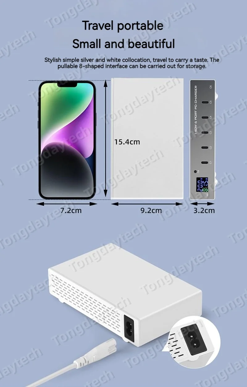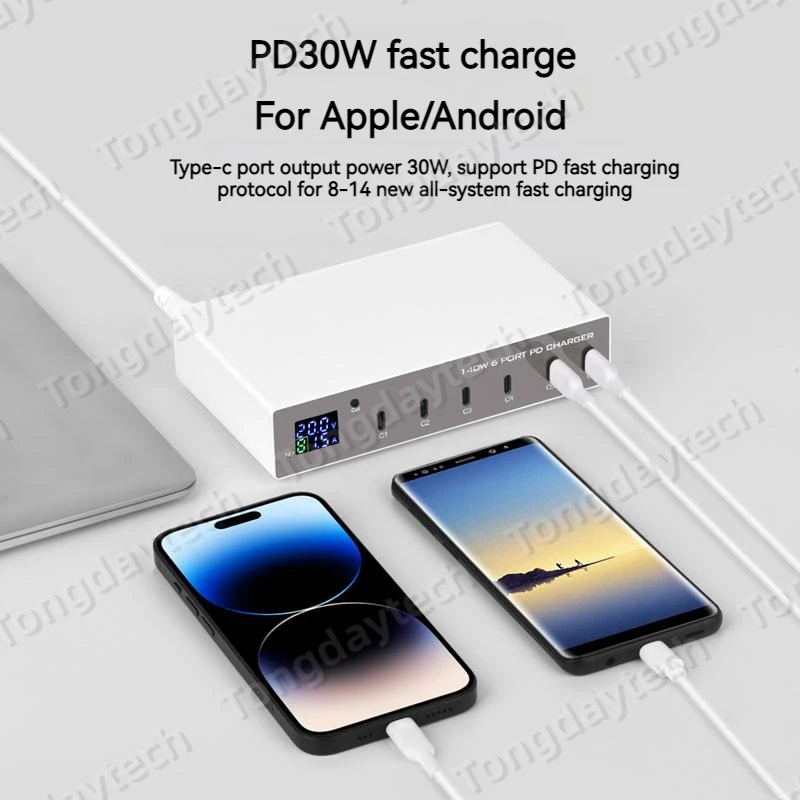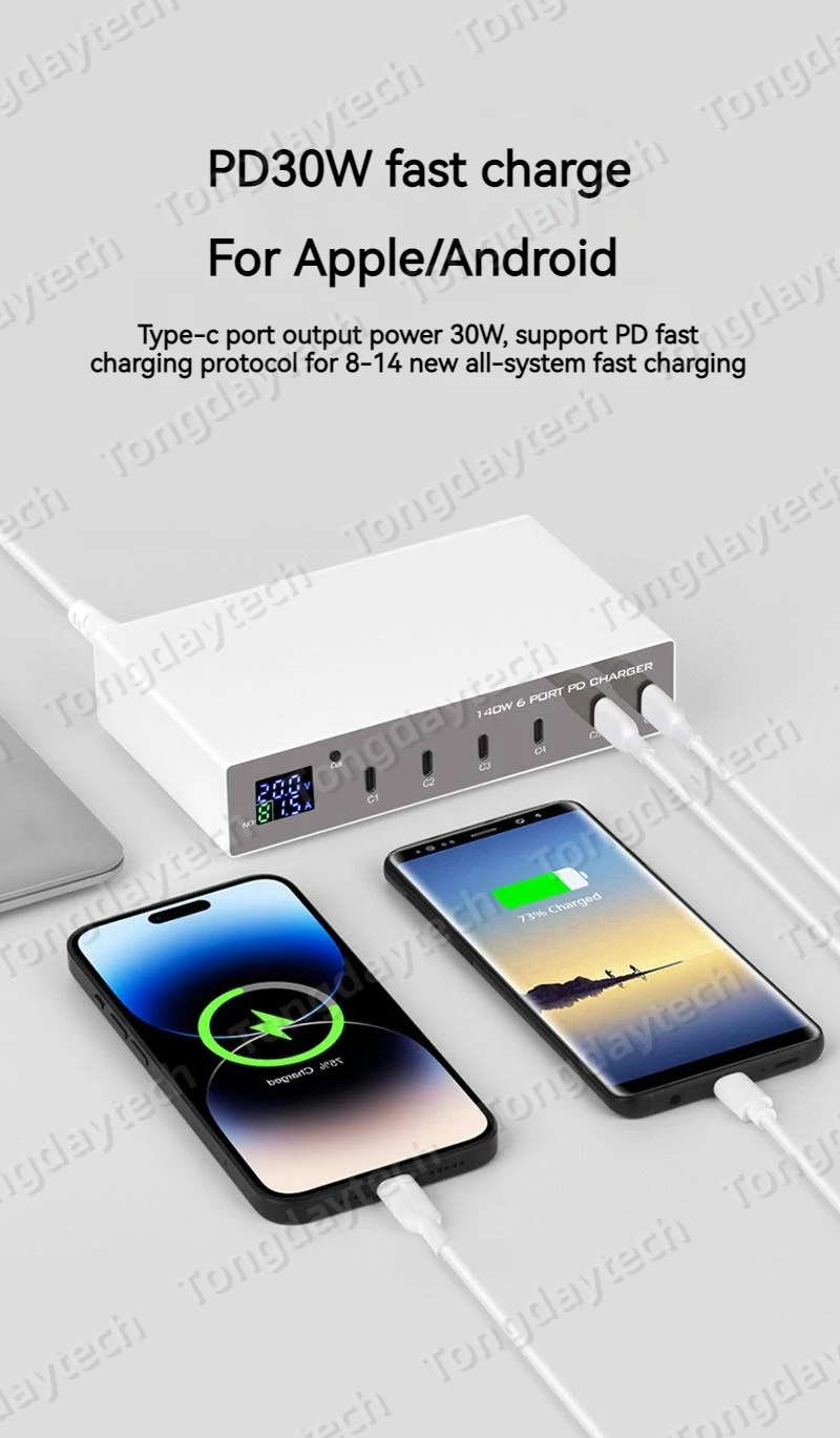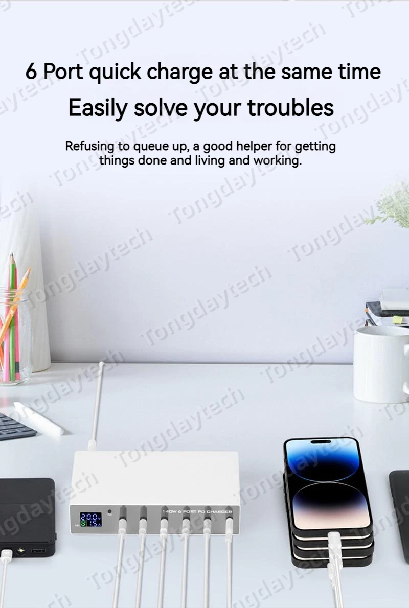 Cargador rápido PD Universal de 140W, pantalla LCD de 30W, cargador PD de 6 puertos para IPhone 14 13 12 11 XS Samsung Xiaomi Carregador Station