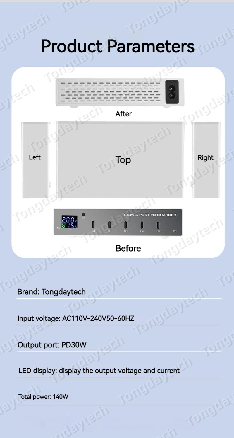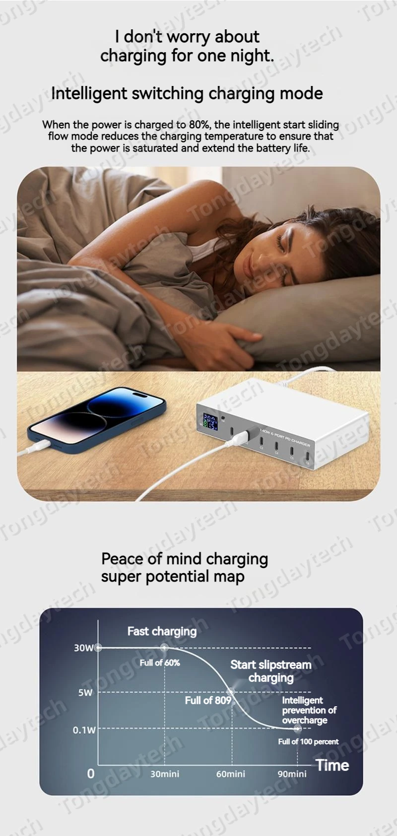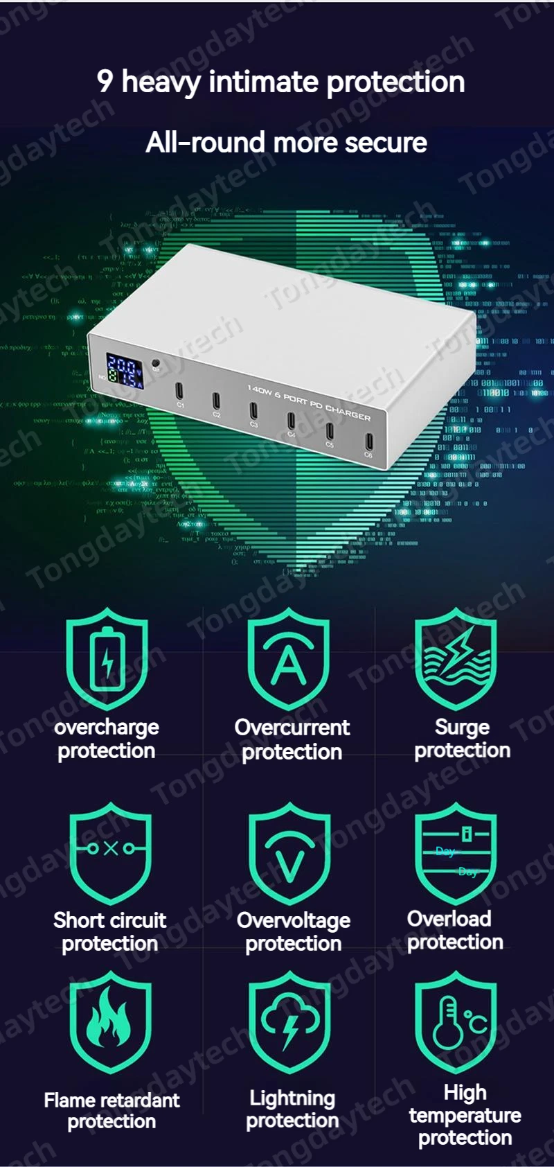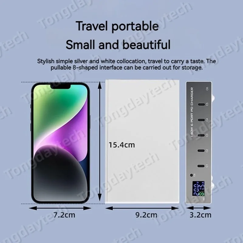 Cargador rápido PD Universal de 140W, pantalla LCD de 30W, cargador PD de 6 puertos para IPhone 14 13 12 11 XS Samsung Xiaomi Carregador Station