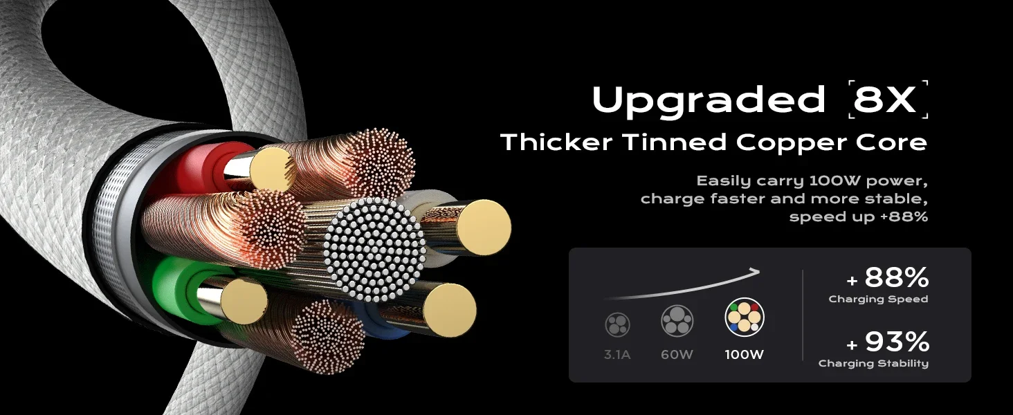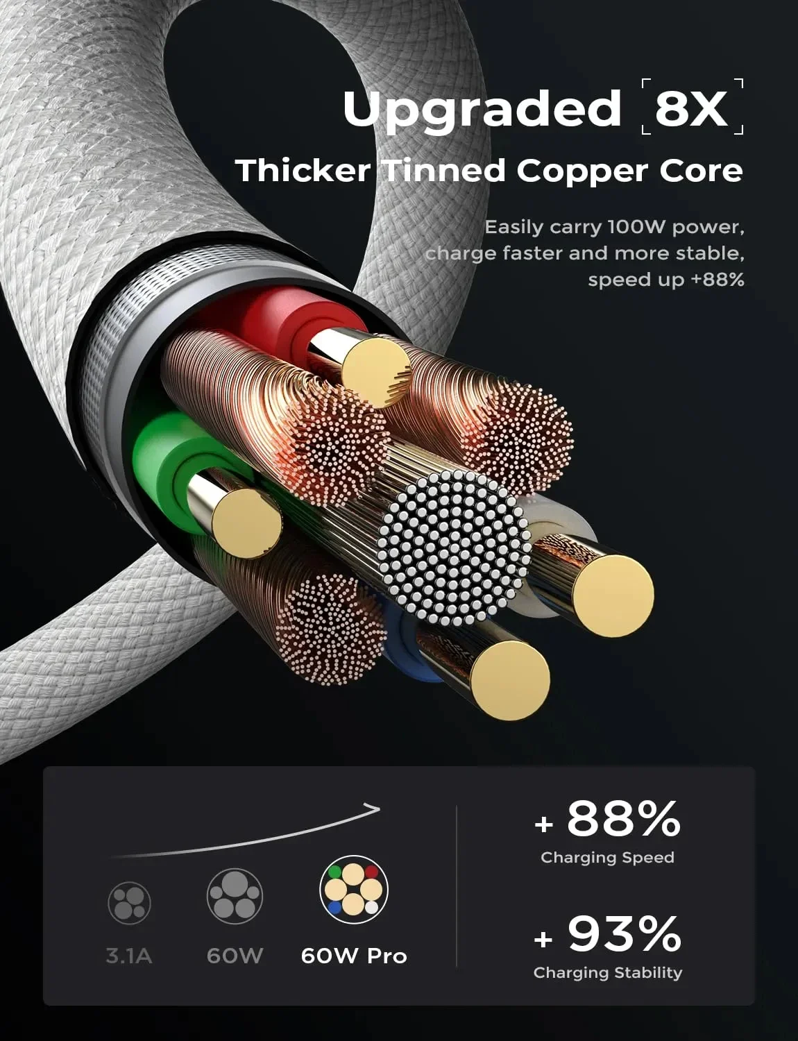 La velocidad de transferencia de datos de este cable USB C es de hasta 480 Mbps entre dos dispositivos, lo que significa descargar 100 canciones cada 5 segundos.
