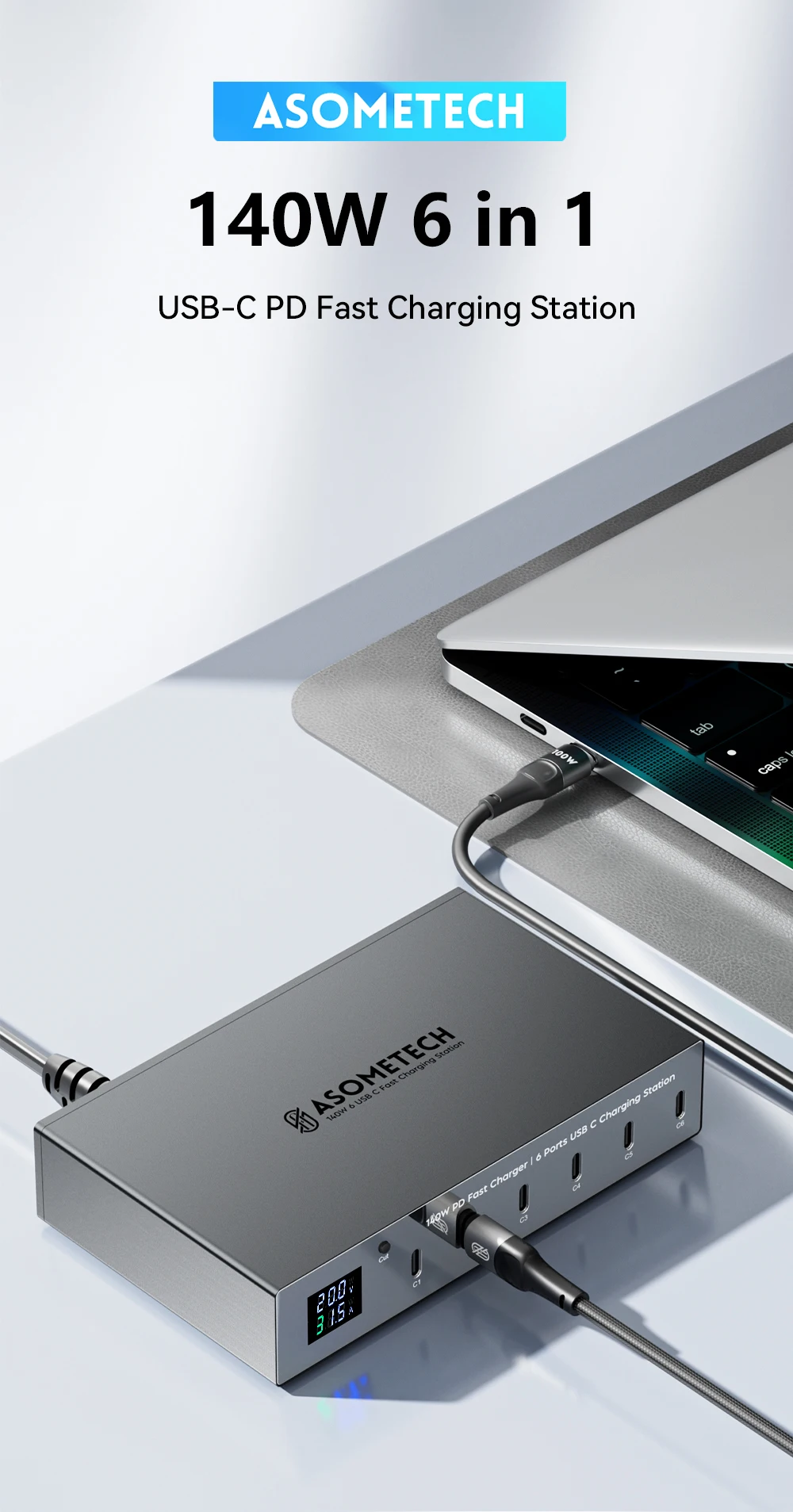 Nombre: Estación de carga USB de 6 puertos PD de 140 W
