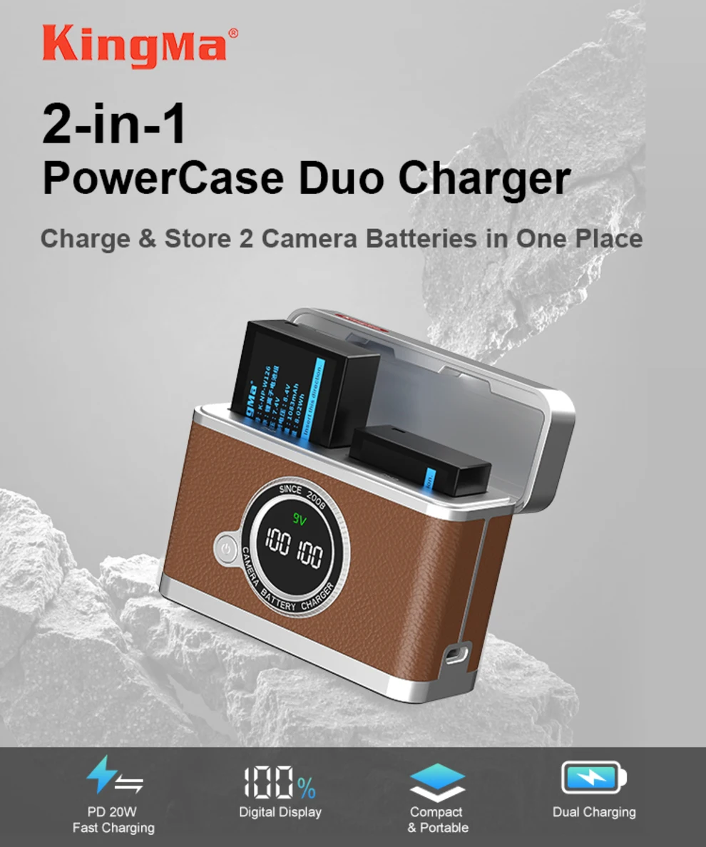 Más que un simple cargador, es tu compañero de viaje perfecto.El cuerpo compacto de bolsillo funciona como cargador dual y como estuche protector para dos baterías.Una tapa magnética segura evita que las baterías se caigan en la bolsa de la cámara.Enciéndelo en cualquier lugar a través del puerto USB-C universal usando un tomacorriente de pared, un cargador de automóvil, un banco de energía o una computadora portátil.