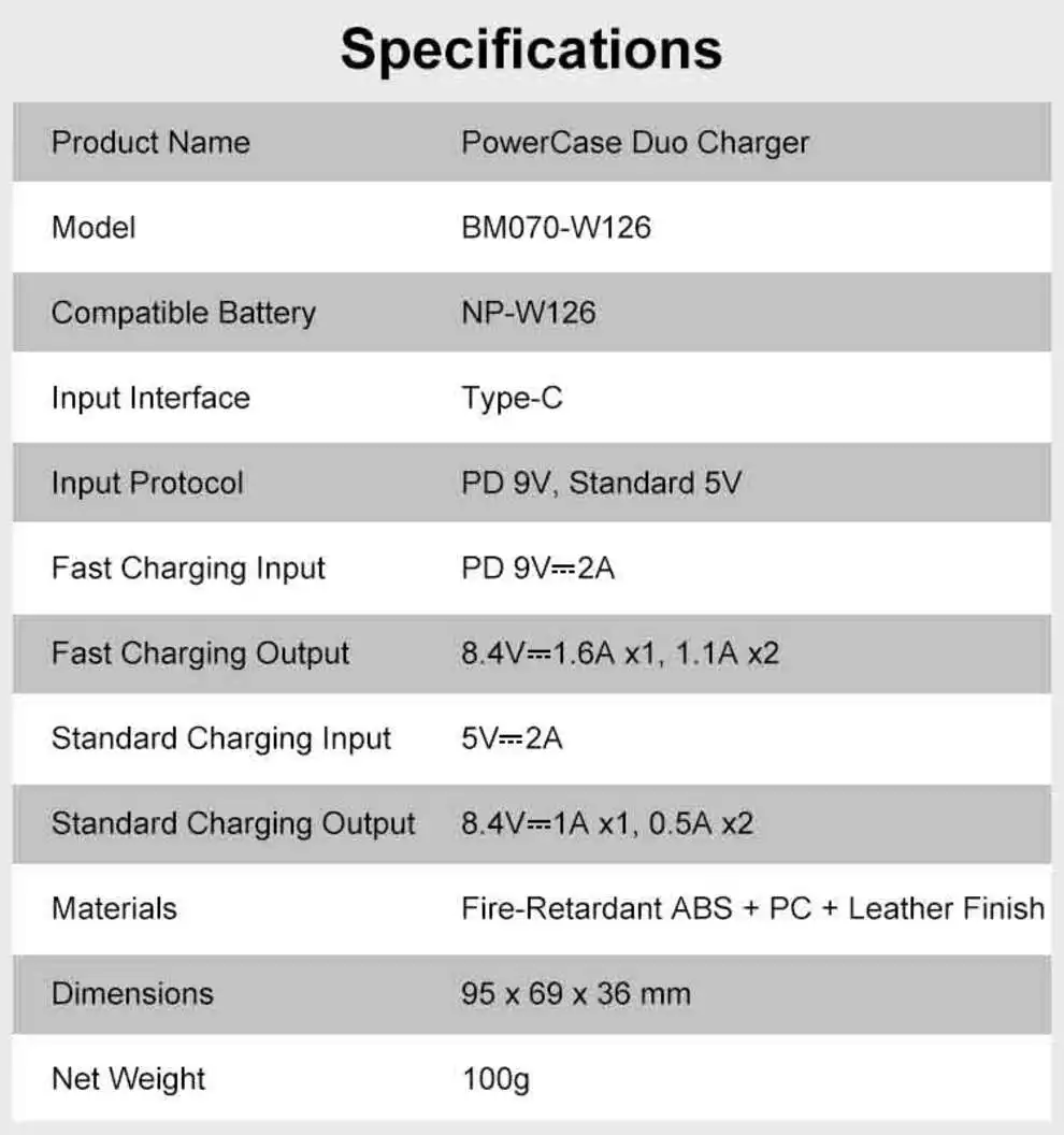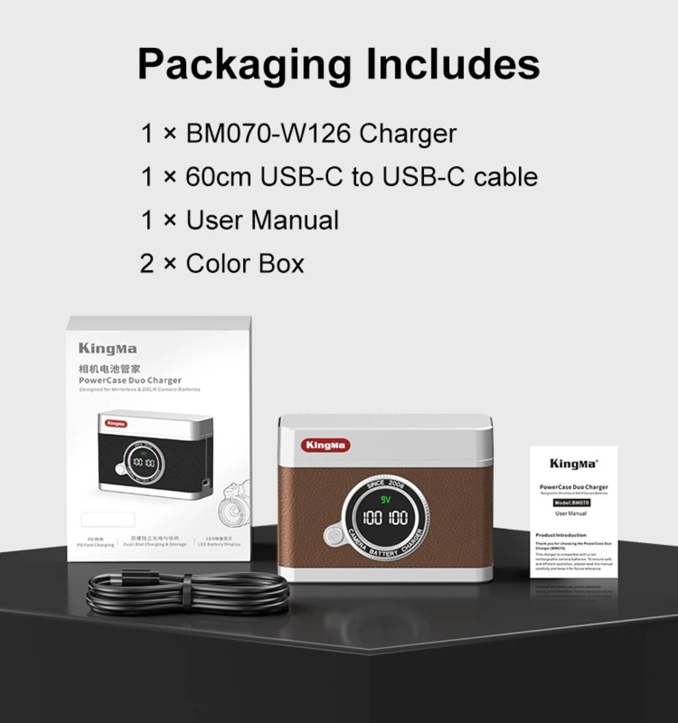 1 × cargador de batería de cámara BM070 (ranura doble)