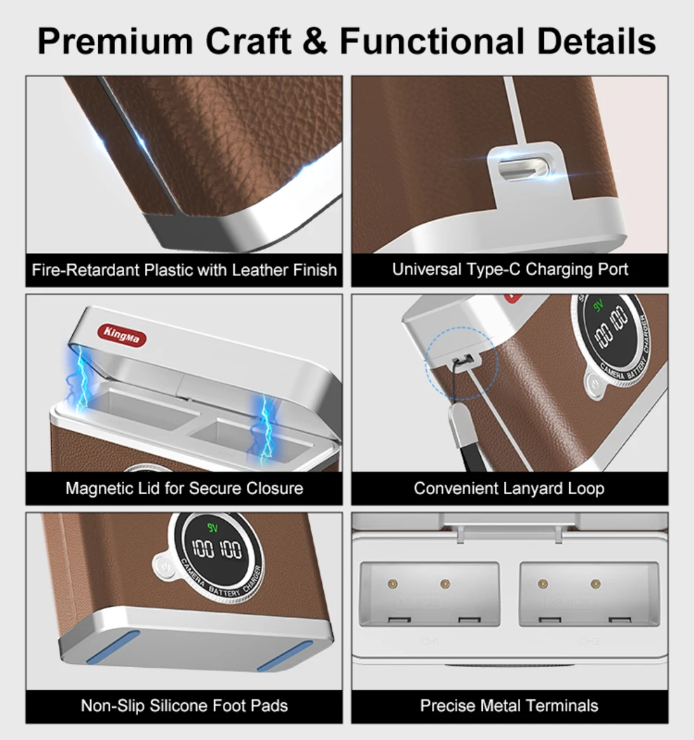 Elimina las conjeturas al cargar.La pantalla LCD nítida muestra el estado de carga en tiempo real de cada batería de forma independiente, mostrando el porcentaje exacto y el modo de carga (Rápido/Estándar).Esta administración visual de energía le permite planificar con precisión sus tomas, decir adiós a la ansiedad por el poder y garantizar que su flujo creativo nunca se interrumpe.