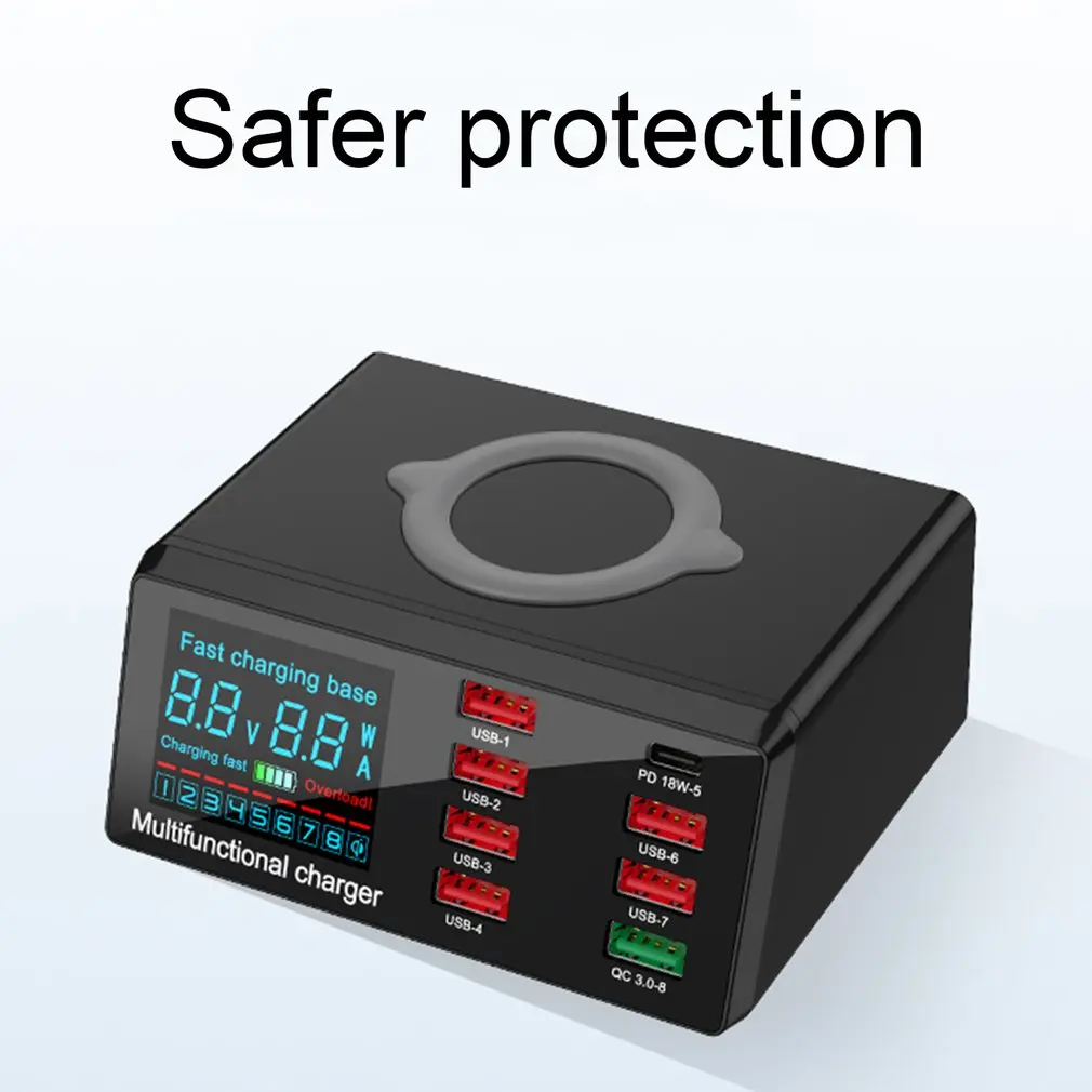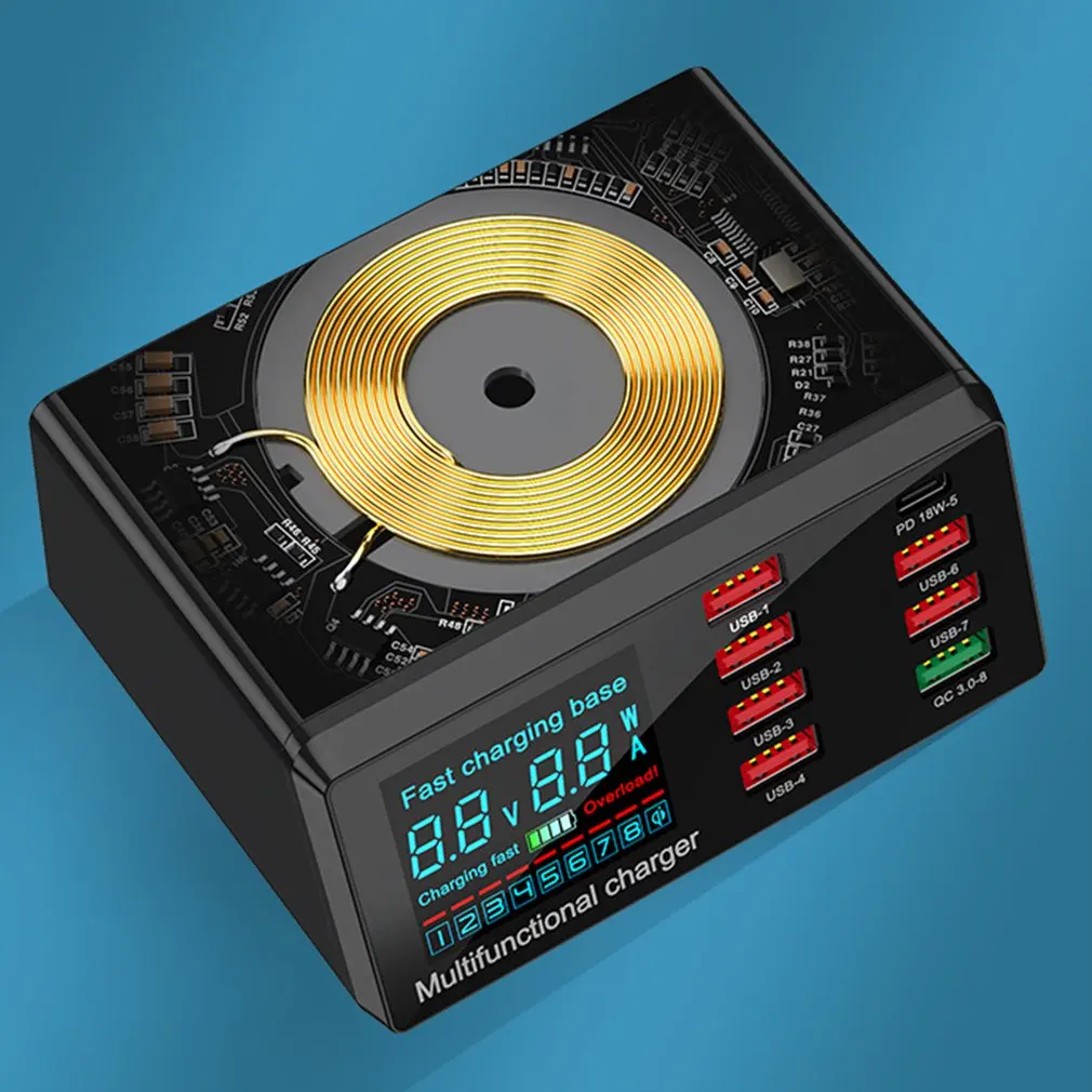 2.7 puertos USB y 1 puerto de carga rápida 3.0 le permiten cargar 8 dispositivos al mismo tiempo.