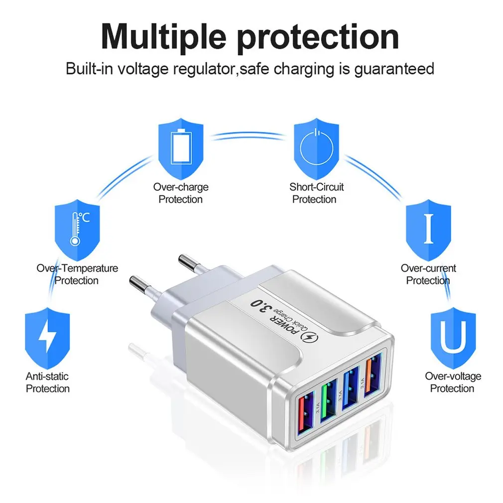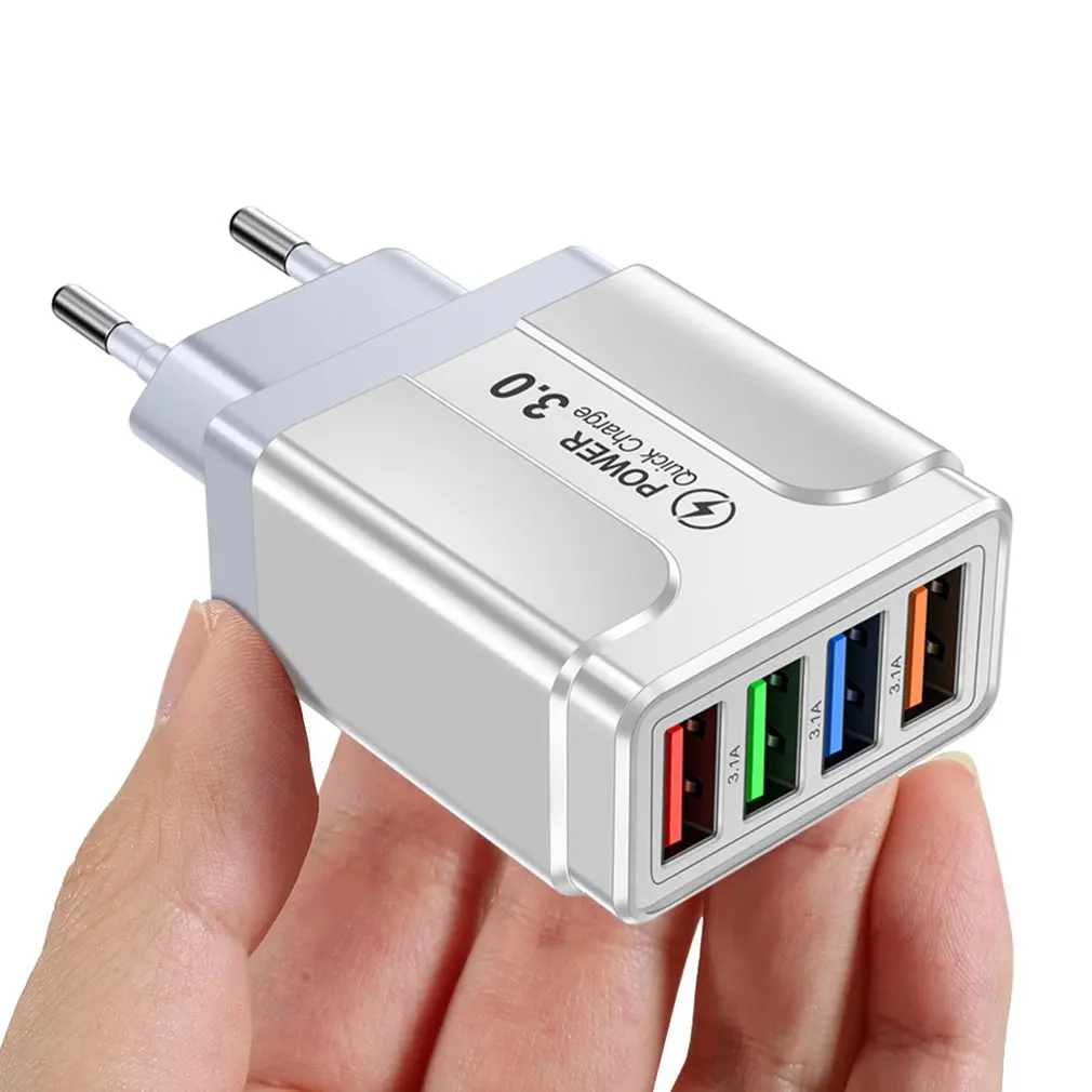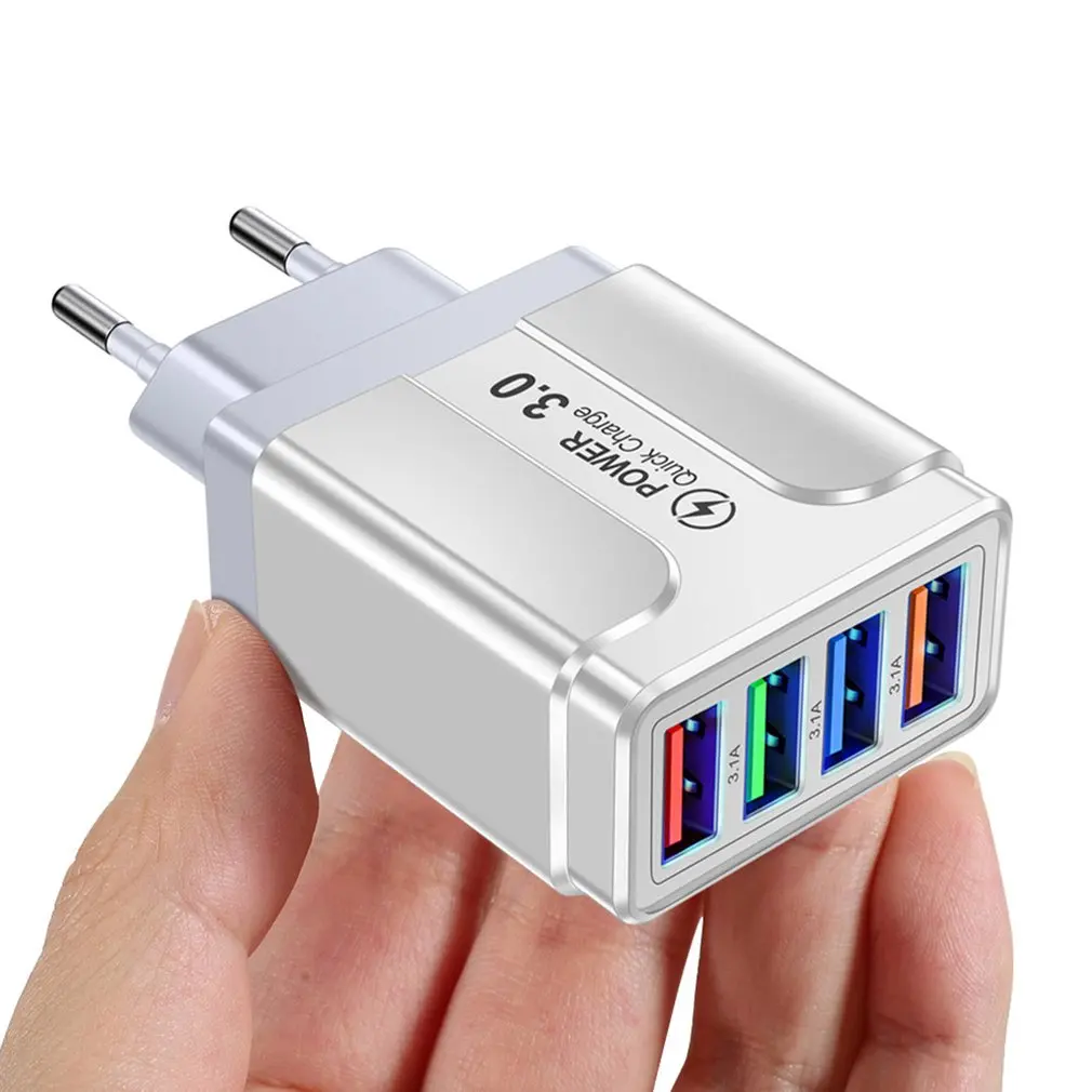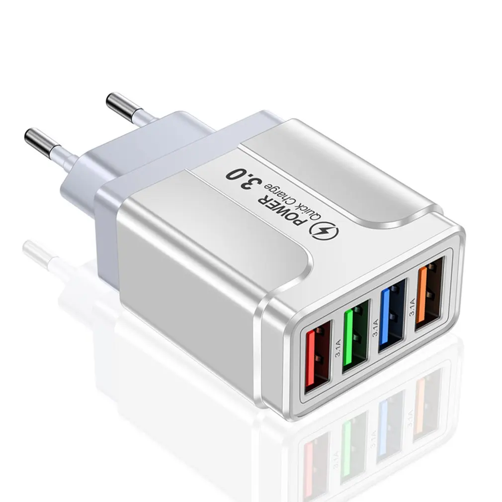 Comprar Cargador rápido de teléfono móvil con 4 puertos USB, cabezal de carga de pared para tableta, teléfono inteligente, 3.1A, multipuerto, Universal, viaje, hogar, enchufe de UE, EE. UU., Reino Unido