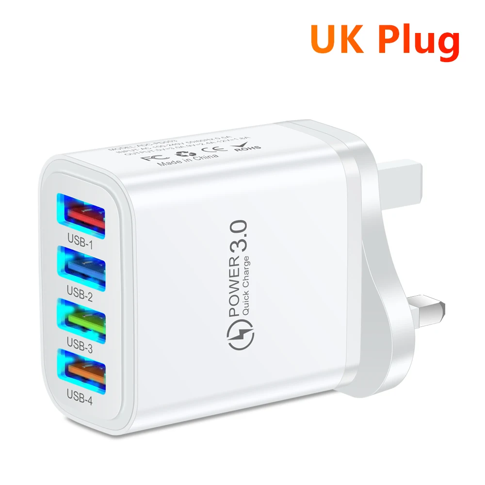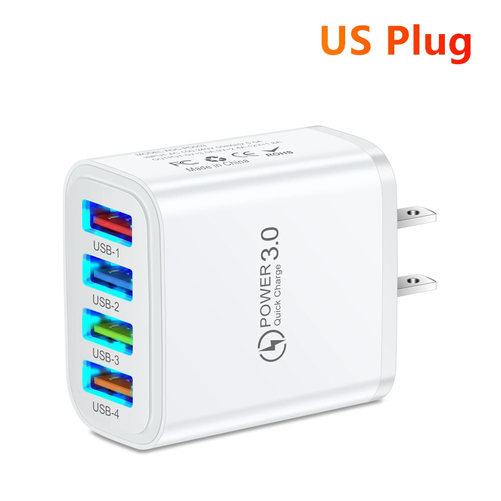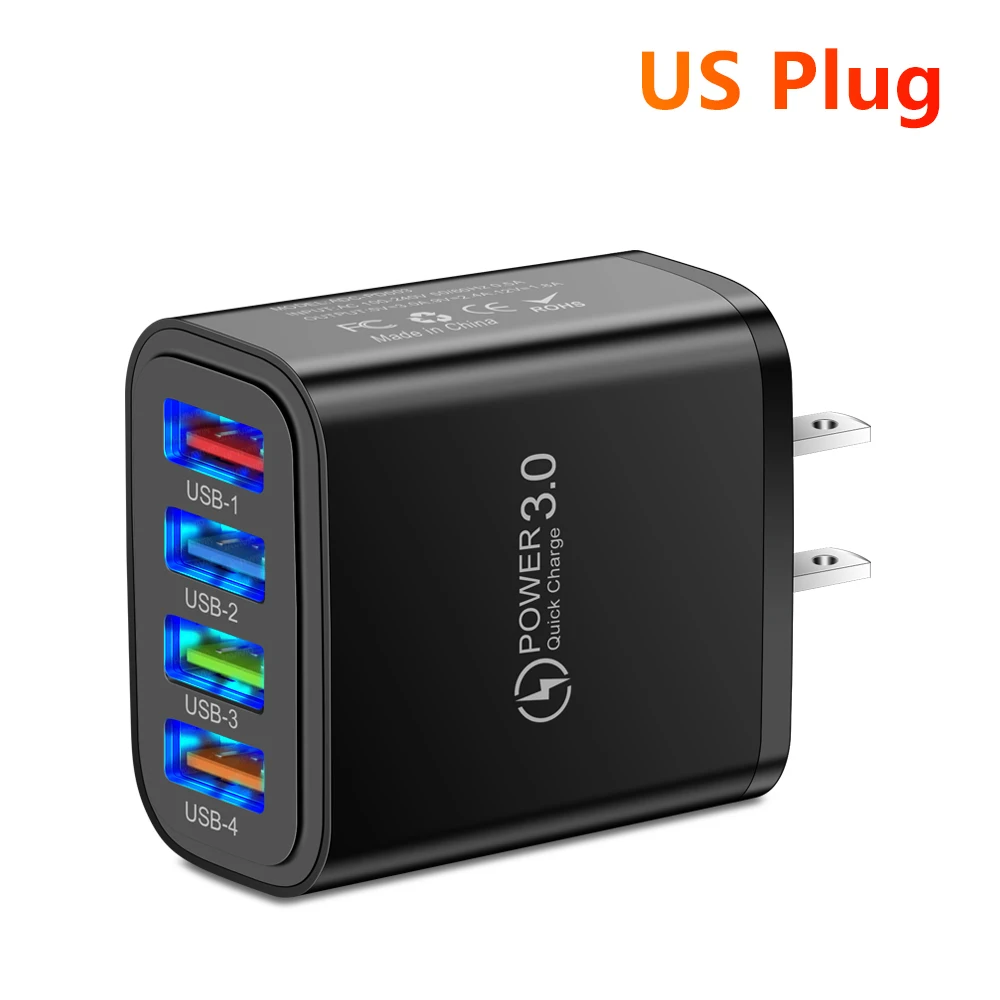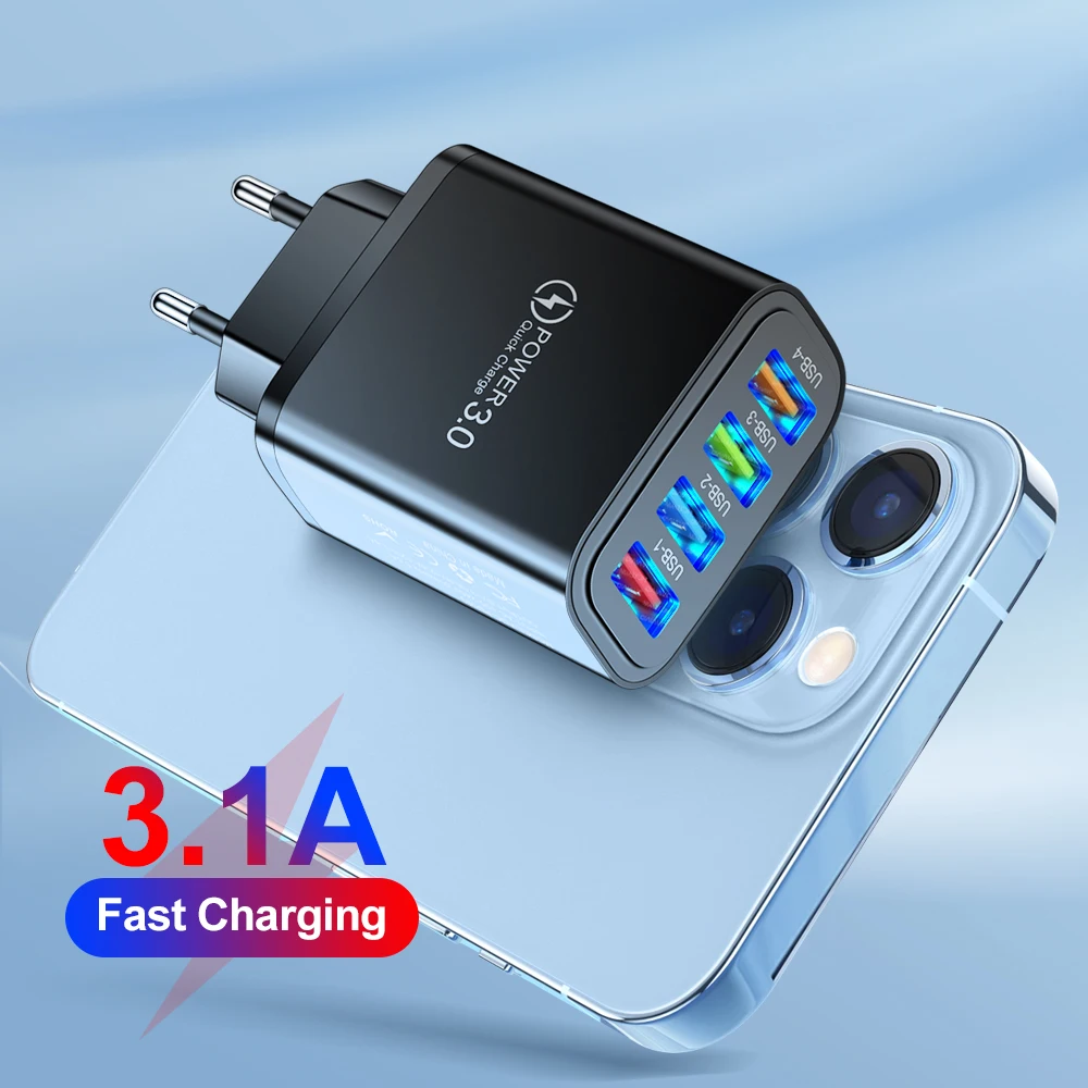 Cargador rápido USB 3.1A Puertos múltiples Carga rápida 3,0 Cargador de pared Adaptador de cargador de teléfono para iPhone 15 14 13 Pro Max Xiaomi Samsung