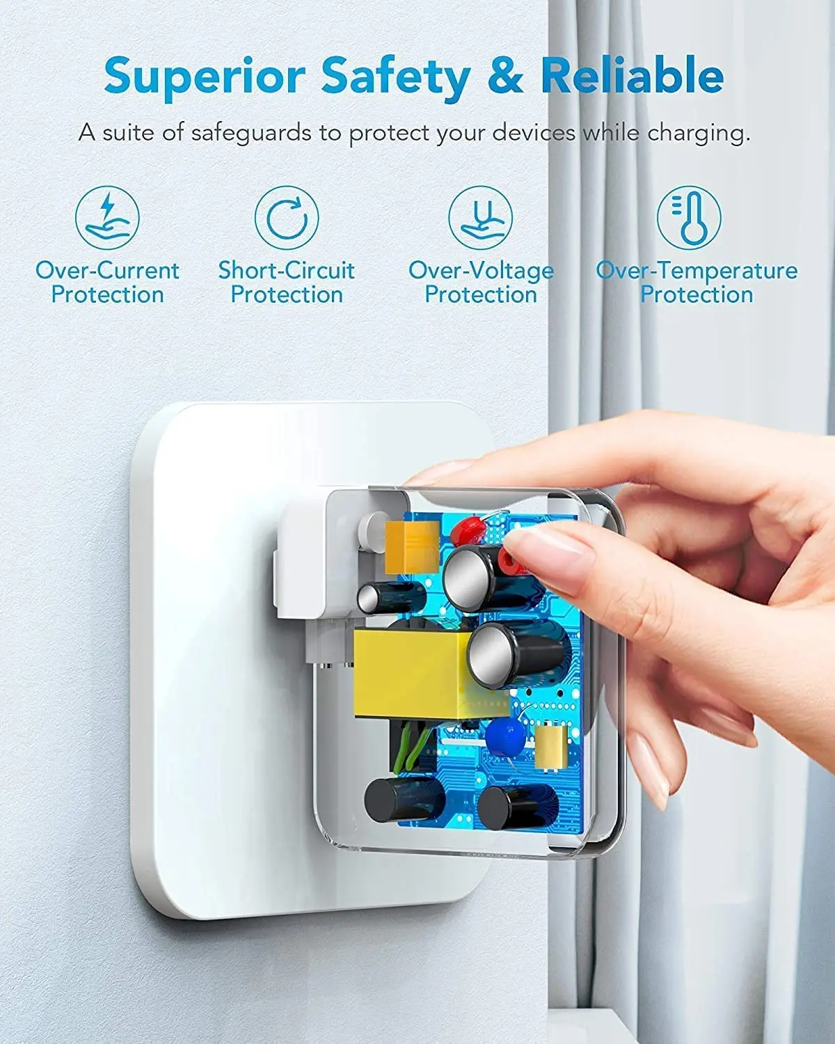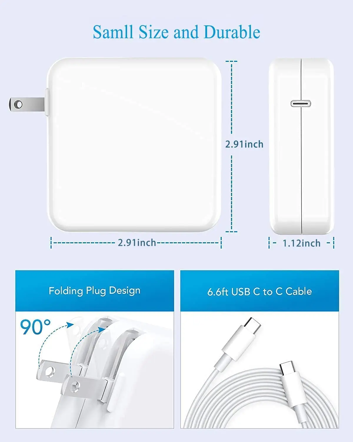 [Especificaciones de potencia] Entrada: 100-240V ~ 50-60Hz 1.8A Salida: 5V=3A, 9V=3A, 10V=5A, 12V=5A, 15V=5A, 18=5A, 20V=5A 100W máx. Funciona con cargador de portátil Mac 96W 87W 67W 61W 30W iPad Pro 2021/2020/2019/2018. Incluido: un bloque de cargador MacBook y un cable USB C