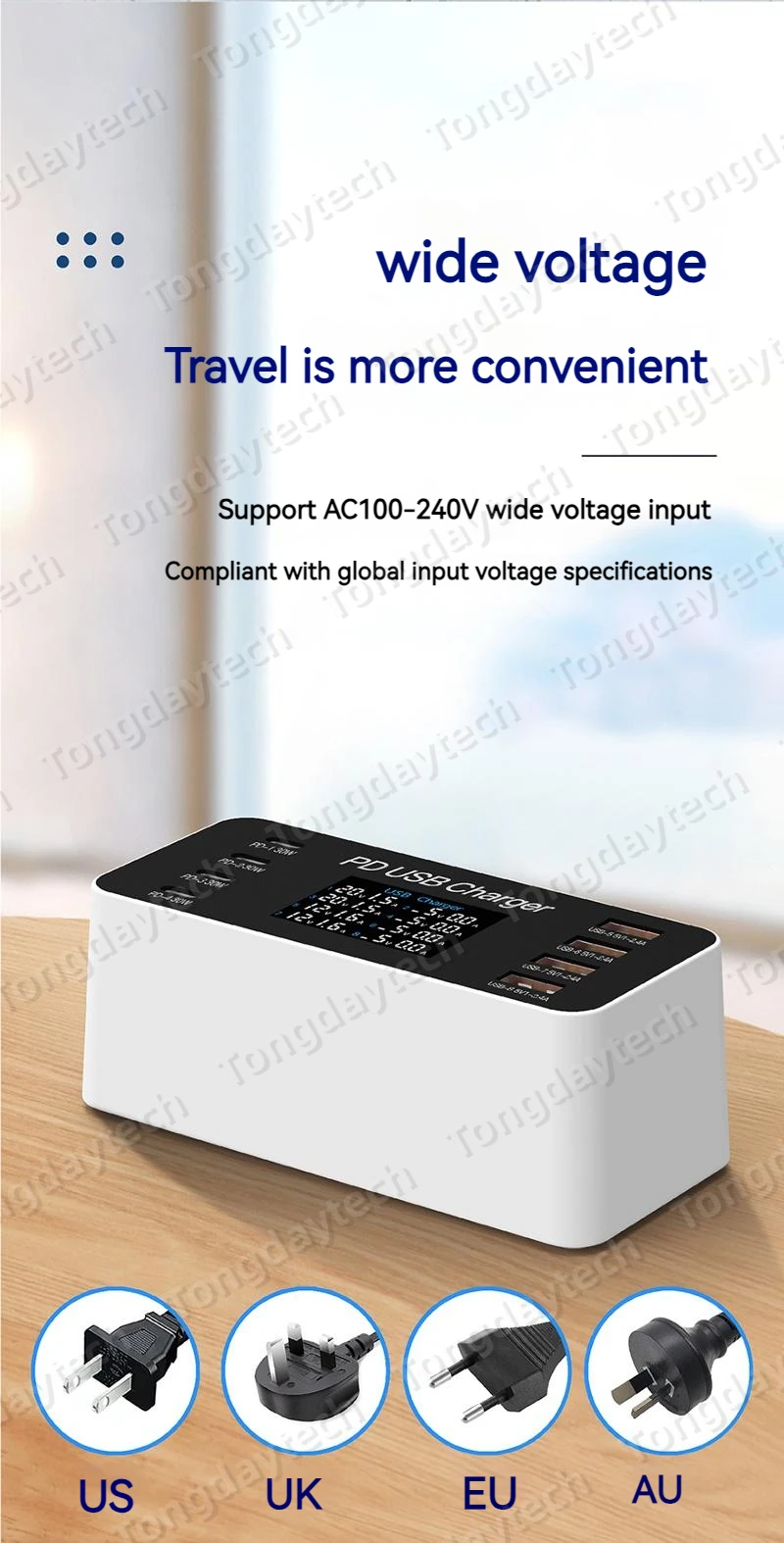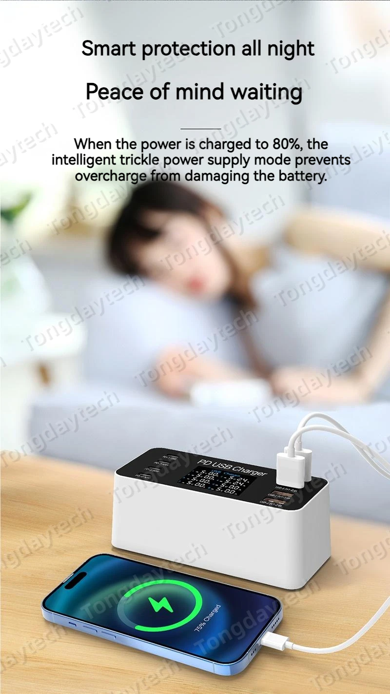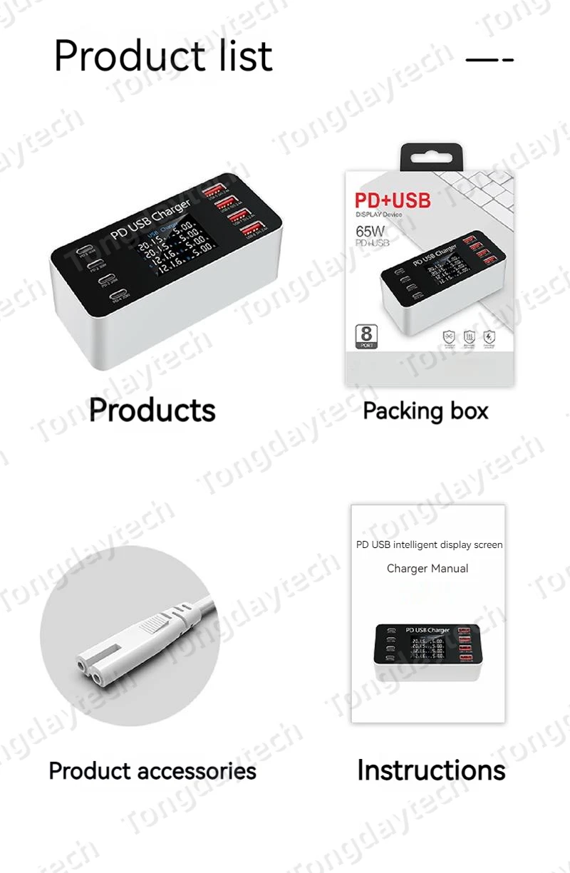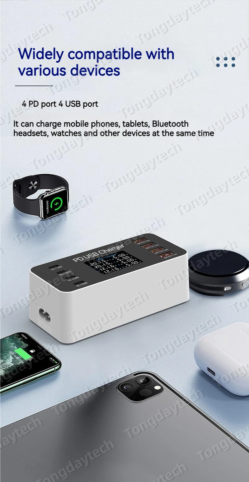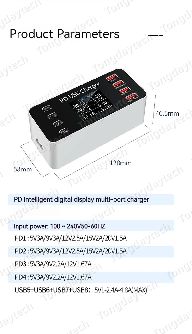 Comprar Cargador rápido USB para tableta, estación de carga de 65W, pantalla LCD, 8 puertos, PD, 30W, Iphone 14, 13, Samsung, Xiaomi