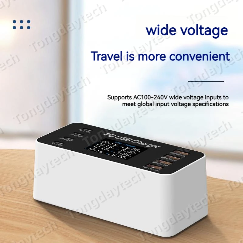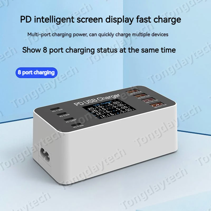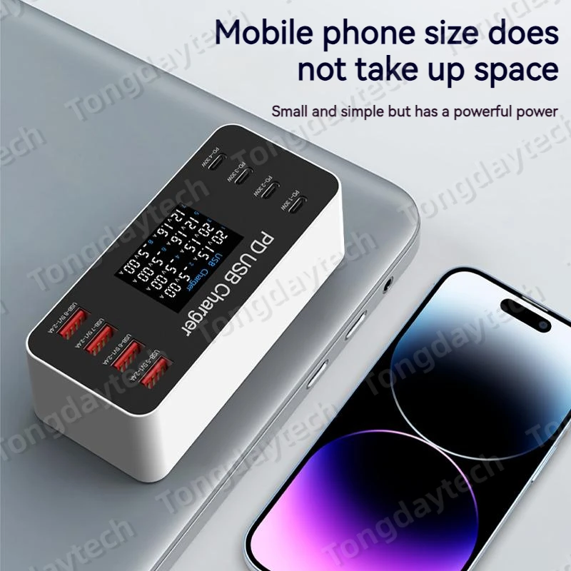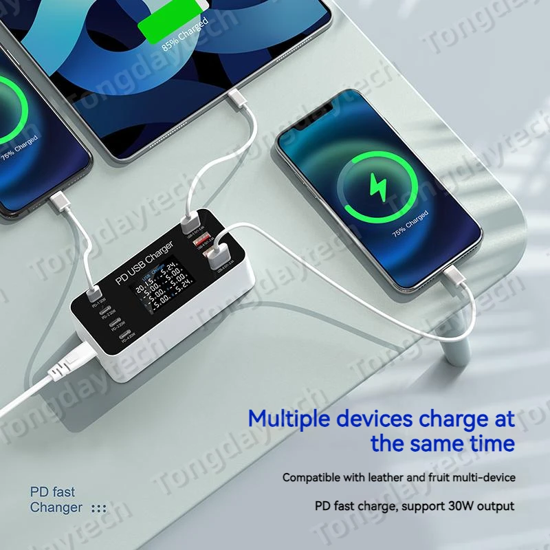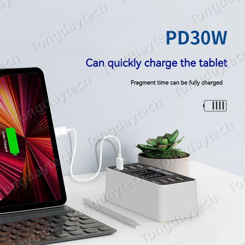 Comprar Cargador rápido USB para tableta, estación de carga de 65W, pantalla LCD, 8 puertos, PD, 30W, Iphone 14, 13, Samsung, Xiaomi