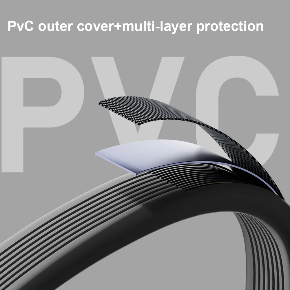 4. Cable de PVC liso:El cable de carga de datos USB C está hecho de material de PVC, proporcionando un tacto suave similar a la piel que es flexible, resistente y sin cordel.